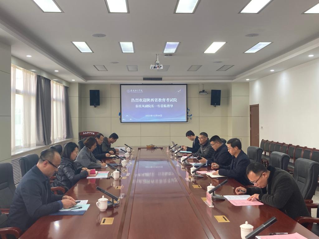 12月4日下午,陕西省教育考试院专家组一行5来beat365阎良校区检查指导2024年全国硕士研究生招生考试考前准备工作。专家组成员有:省教育考试院副院长、二级巡视员秦桂凤,省教育考试院研招处处长王奇峰、副处长传晓媛,陕西科技大学研究生院副院长吴鲁阳,西安工业大学研究生院副院长王恒。