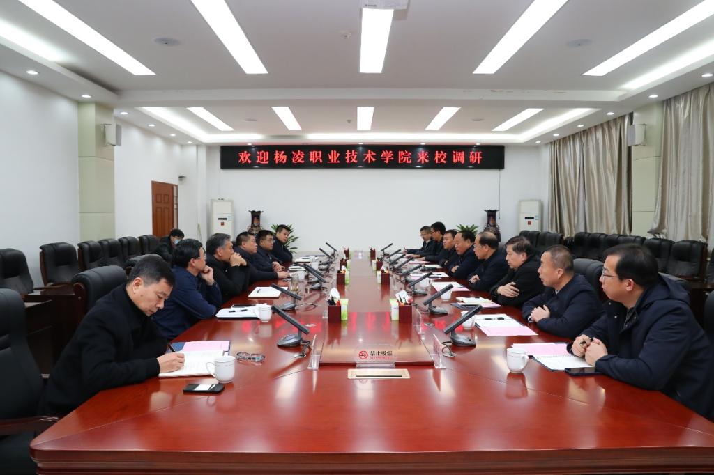 12月14日下午,杨凌职业技术学院党委书记王周锁、校长仲伟周带领学校领导班子一行来beat365调研交流。学校党委书记刘振涛、校长祁玉龙及其他在校的领导班子成员参加了调研座谈会,座谈会由刘振涛主持。