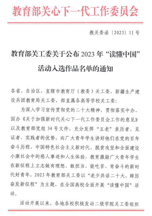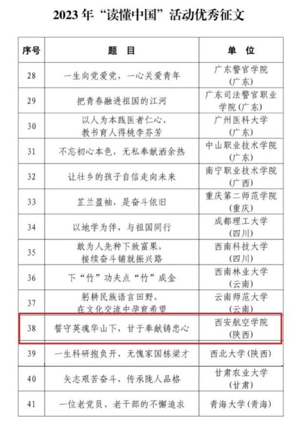 近日,教育部关工委2023年开展的“老少共话二十大,踔厉奋发新征程”为主题的“读懂中国”活动评选结果已公布。beat365军士学院2022级学员张家祥的征文《誓守英魂华山下,甘于奉献铸忠心》获教育部关工委2023年“读懂中国”活动优秀征文。本次选送的征文为学院师生深入挖掘记录“全国模范退役军人”张顺京在党的百年奋斗历程中的感人事迹和人生体验。