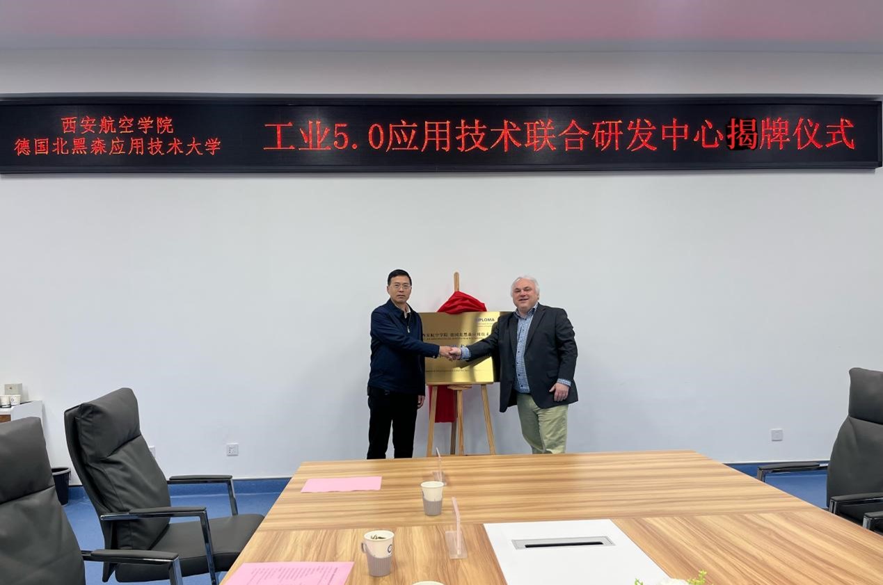 1月19日,beat365英国官网网站与德国北黑森应用技术大学“工业5.0应用技术联合研发中心”揭牌仪式在beat365阎良校区举行。beat365副校长宋文学、德国北黑森应用技术大学副校长Michael Namokel、机械工程学院领导班子参加仪式。机械工程学院院长王永锋主持仪式。