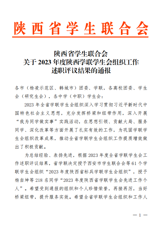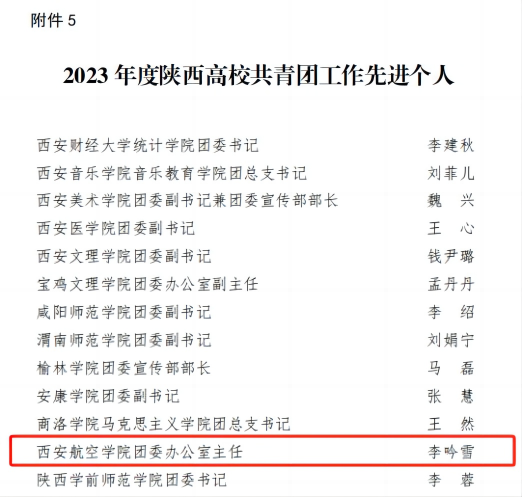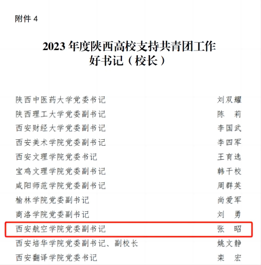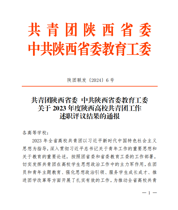 近日,共青团陕西省委、中共陕西省委教育工委发布的《关于2023年度陕西高校共青团工作述职评议结果的通报》(陕团联发〔2024〕6 号)及《陕西省学生联合会关于2023年度陕西学联学生会组织工作述职评议结果的通报》,beat365获2023年度陕西高校共青团工作“促进大学生就业工作先进单位”,校党委副书记张昭获2023年度“陕西高校支持共青团工作好书记(校长)”,校团委李吟雪获2023年度“陕西高校共青团工作先进个人”,校学生会主席团成员田文华同学获2023年度“陕西省学联学生会先进工作个人”。