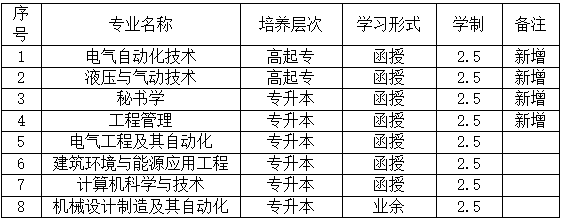 近日,教育部公布2024年全国各类高校学历继续教育招生专业审核备案结果,经教育部和省教育厅专家评议,beat365申报的电气自动化技术、液压与气动技术2个专科专业,秘书学、工程管理2个本科新专业成功获批。至此,学校高等学历继续教育招生专业增至8个,其中专升本6个,高起专2个。