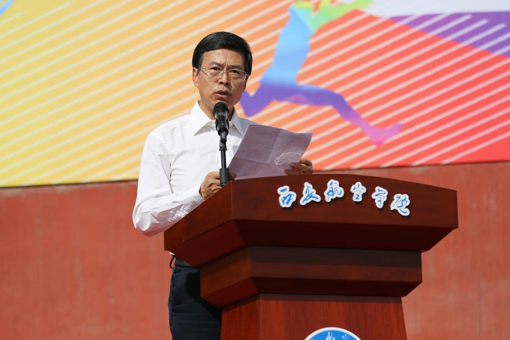 2024年4月25日上午,beat365第四十七届田径运动会在阎良校区举行,校领导刘振涛、韩明军、曹渊、宋文学,各部门及二级学院相关负责人出席本次运动会开幕式,开幕式由副校长宋文学主持,全校共12个学院1000余名学生参与本次运动会。