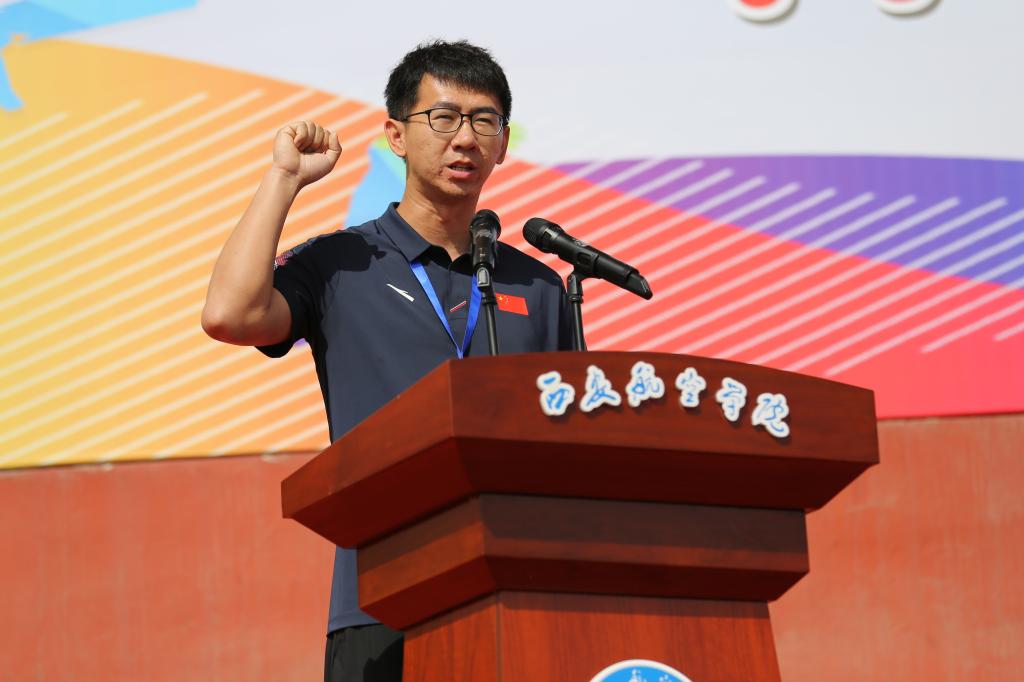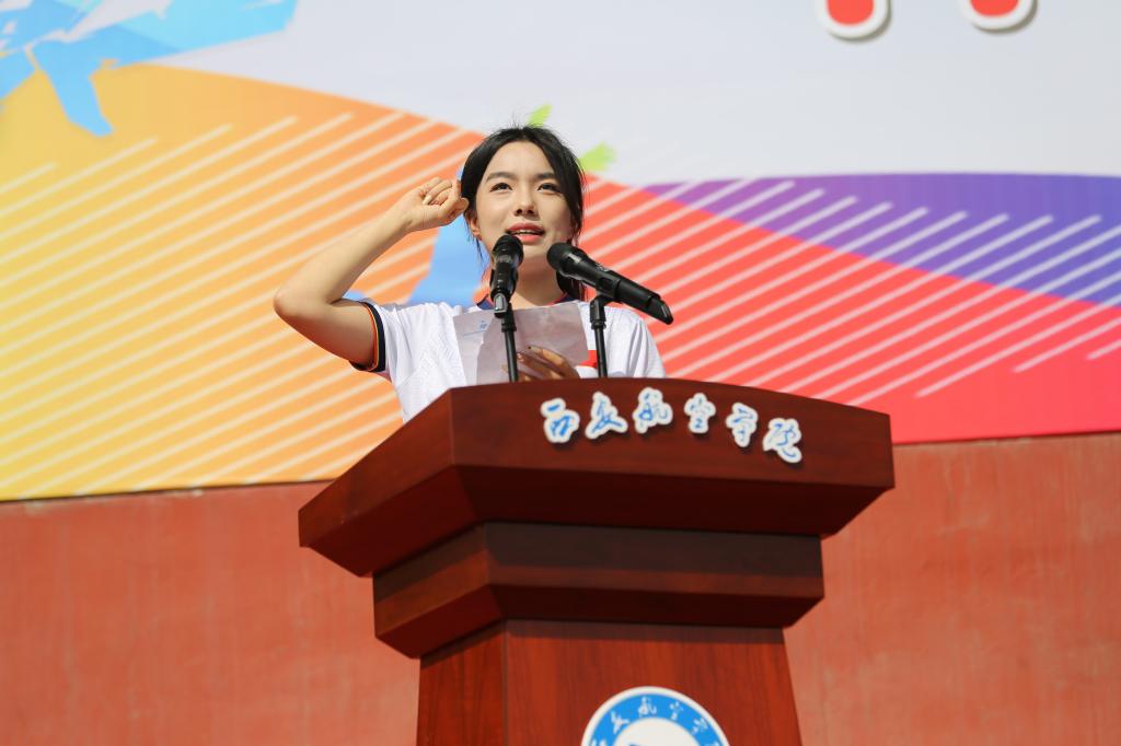 上午9点整,国旗护卫队队员们神情严肃,喊着嘹亮的口号,迈着整齐有力的步伐,在神圣的国歌中一步一步坚定前进至升旗杆下,彩旗方阵、教职工方阵、裁判员方阵和各学院学生方阵喊着嘹亮的口号,精神抖擞的整齐排列并按秩序经过主席台,展现了西航师生青春活力、积极向上、锐意进取、精益求精的精神风貌。