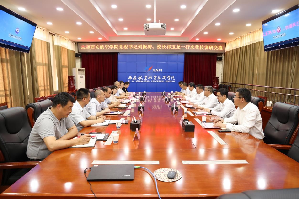 4月26日下午,校党委书记刘振涛、校长祁玉龙一行7人赴西安航空职业技术学院调研交流,受到了该校党委书记金文、校长张敏华的热情接待,双方围绕进一步加强战略合作进行了座谈交流。