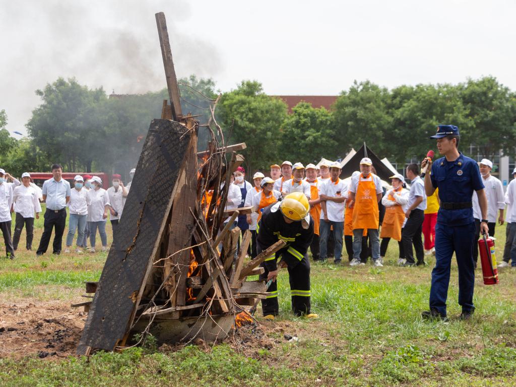 此次演练,把消防技能的讲授、培训和实操作为重要内容纳入其中。保卫处组织楼宇管理员、餐厅工作人员以及部分学生安全员,由阎良区消防救援大队的专职消防员讲解常用灭火器、灭火毯、防毒面具和消防水带的操作使用方法,并对初起火灾的扑救方法进行了详细的讲解和灭火实操示范,现场师生员工系统学习了消防基本技能,并进行了灭火器使用、消防水带连接等项目的现场演练。整个演练过程紧张有序,达到预期目的,提升了师生员工的消防安全意识和“四个能力”,夯实了校园消防安全管理工作基础。