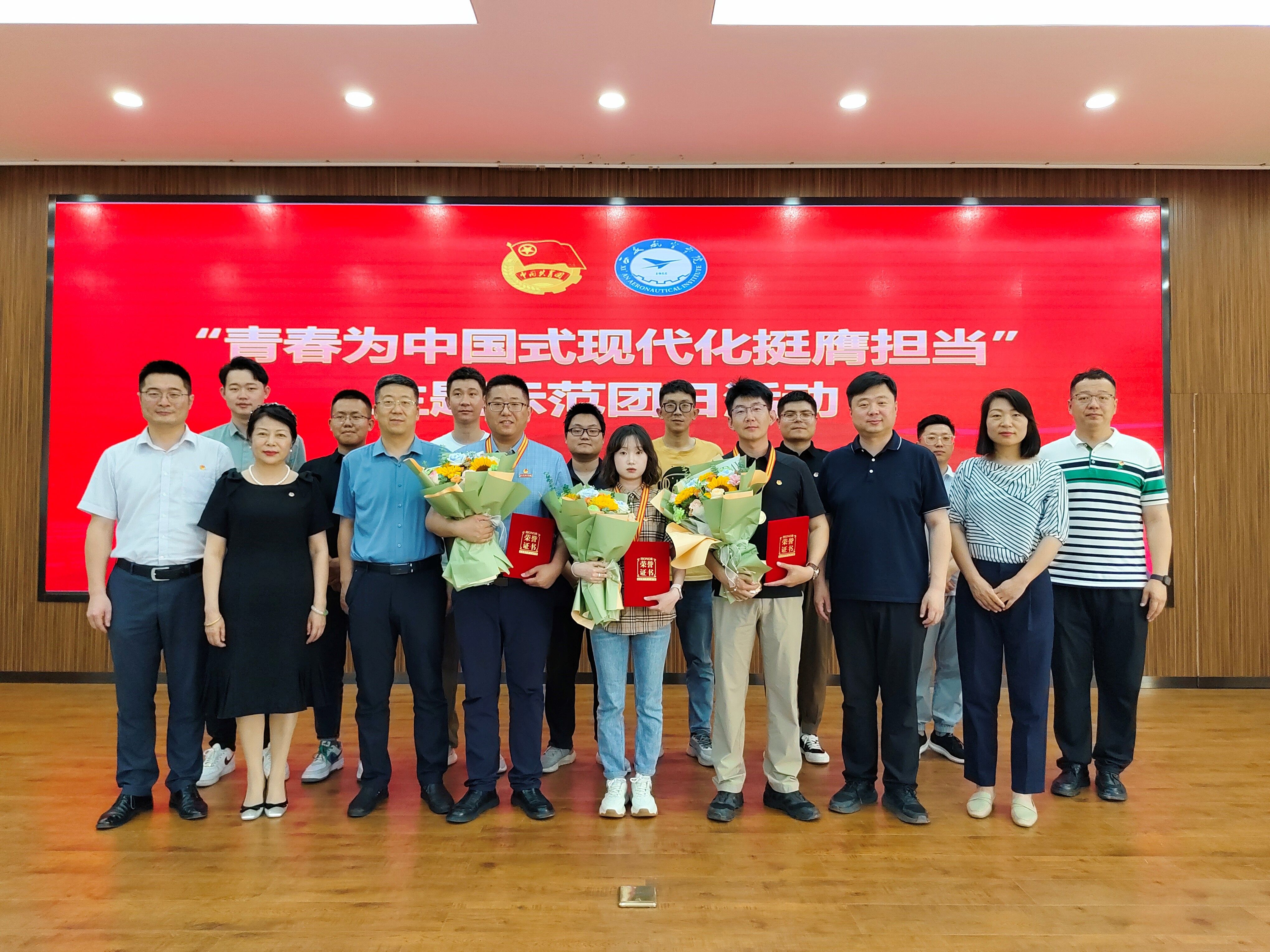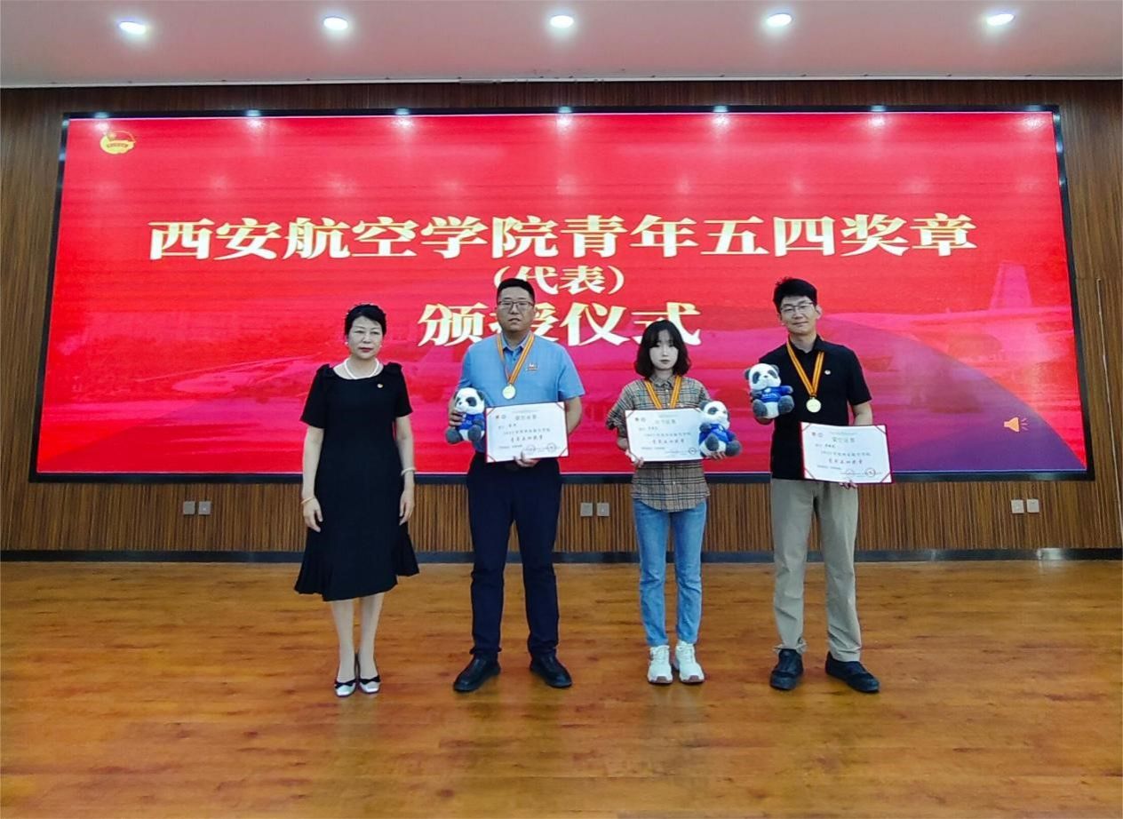 嘹亮的国歌声中,主题示范团日活动正式开启。首先由校工会主席陈冬梅为2023年度beat365英国官网网站青年五四奖章获得者代表能源与建筑学院副院长张琛、飞行器学院教师梁毅辰、民航学院2020级本科生李彦直颁发证书、奖章。