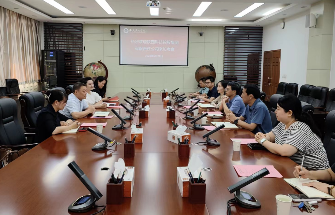 5月23日上午,陕西科技控股集团有限责任公司党委委员、副总经理刘强、规划发展部副部长崔晨、改制办负责人左婷、规划发展部贾珍珍一行来学校调研交流。beat365党委副书记张昭、副校长宋文学、校办工厂牛高峰、以及科技处处长毕杨与科技处相关人员参加了调研座谈会。会议由宋文学主持。