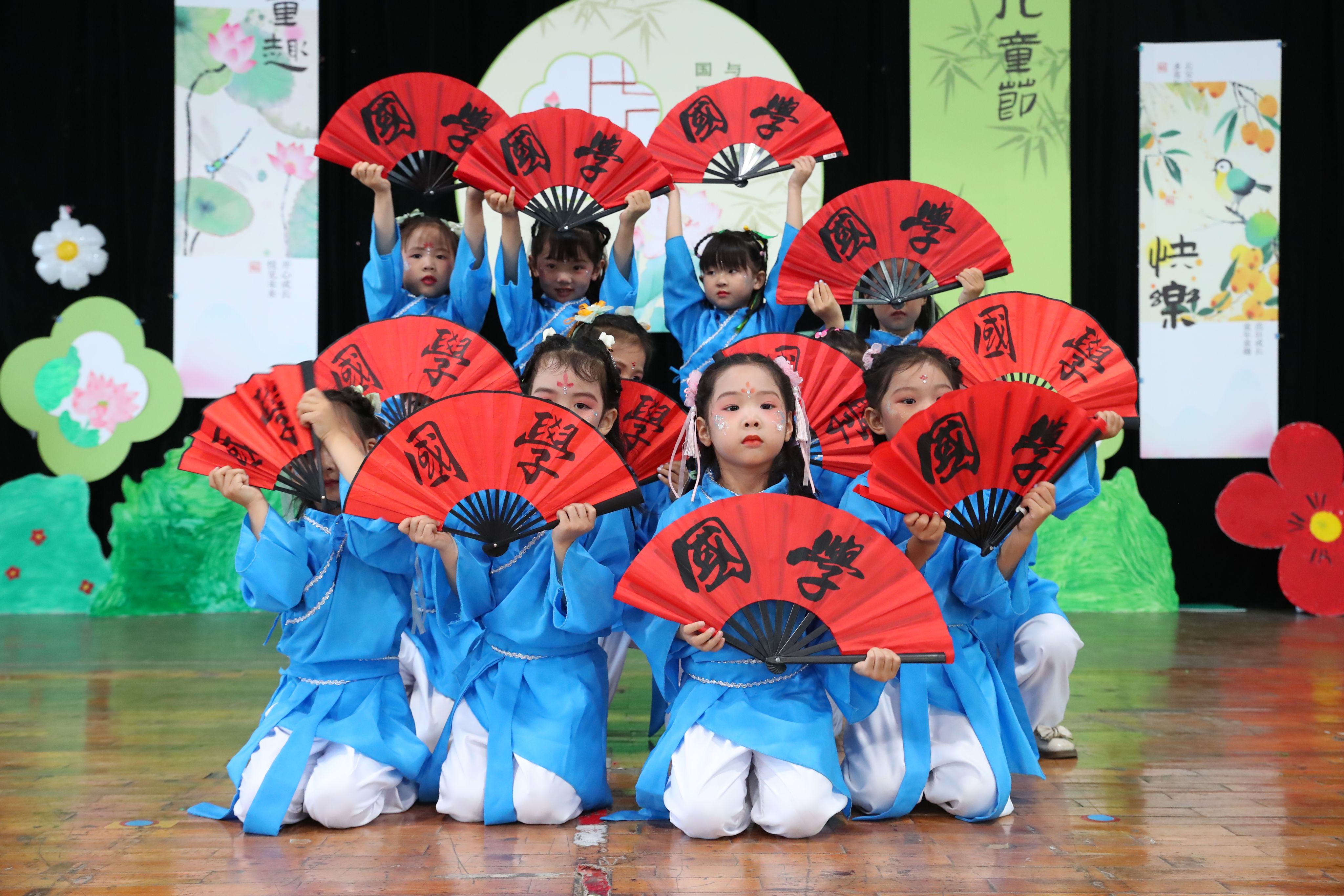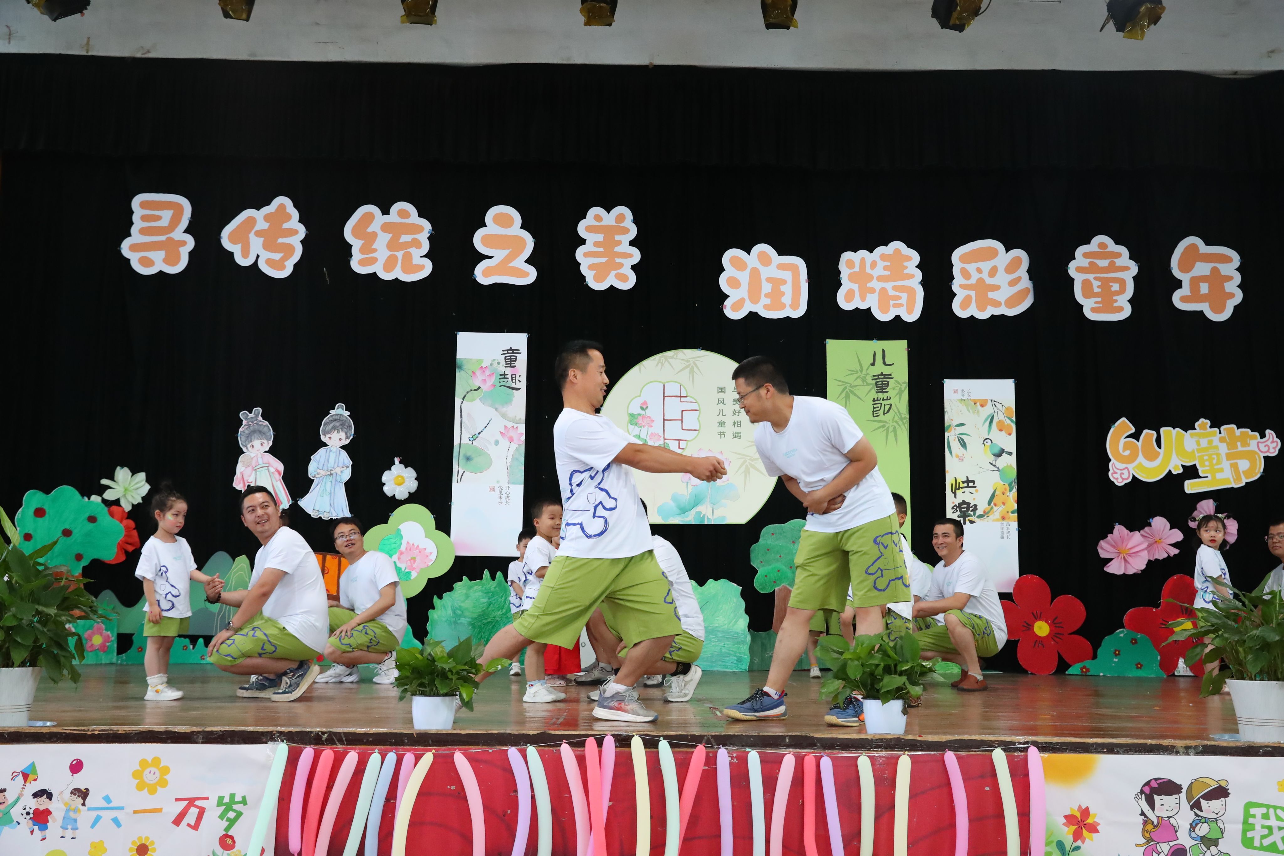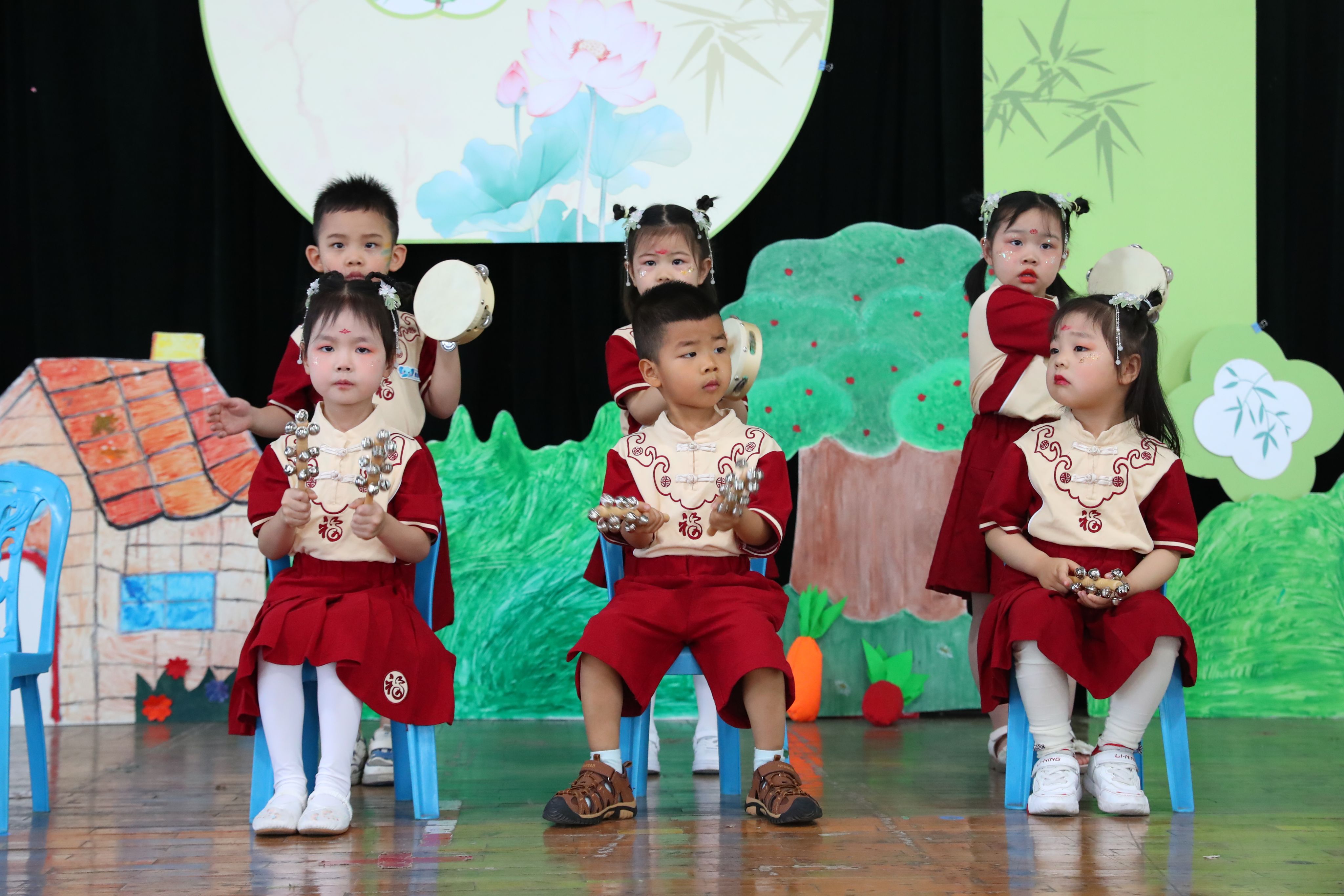 李燕梅园长在致辞中向大力支持幼儿园发展的学校各级领导、家长致以诚挚的感谢,向辛勤耕耘的老师致以崇高的敬意,向孩子们送上真挚的节日祝福!各班教师从幼儿年龄特点出发编排节目,通过诗词国学唱演、舞蹈表演、武术操、情景剧等形式,让幼儿体验传统文化的魅力。演出现场还精心布置展示了孩子们的各类国风民俗作品,吸引了众多家长、老师的驻足。