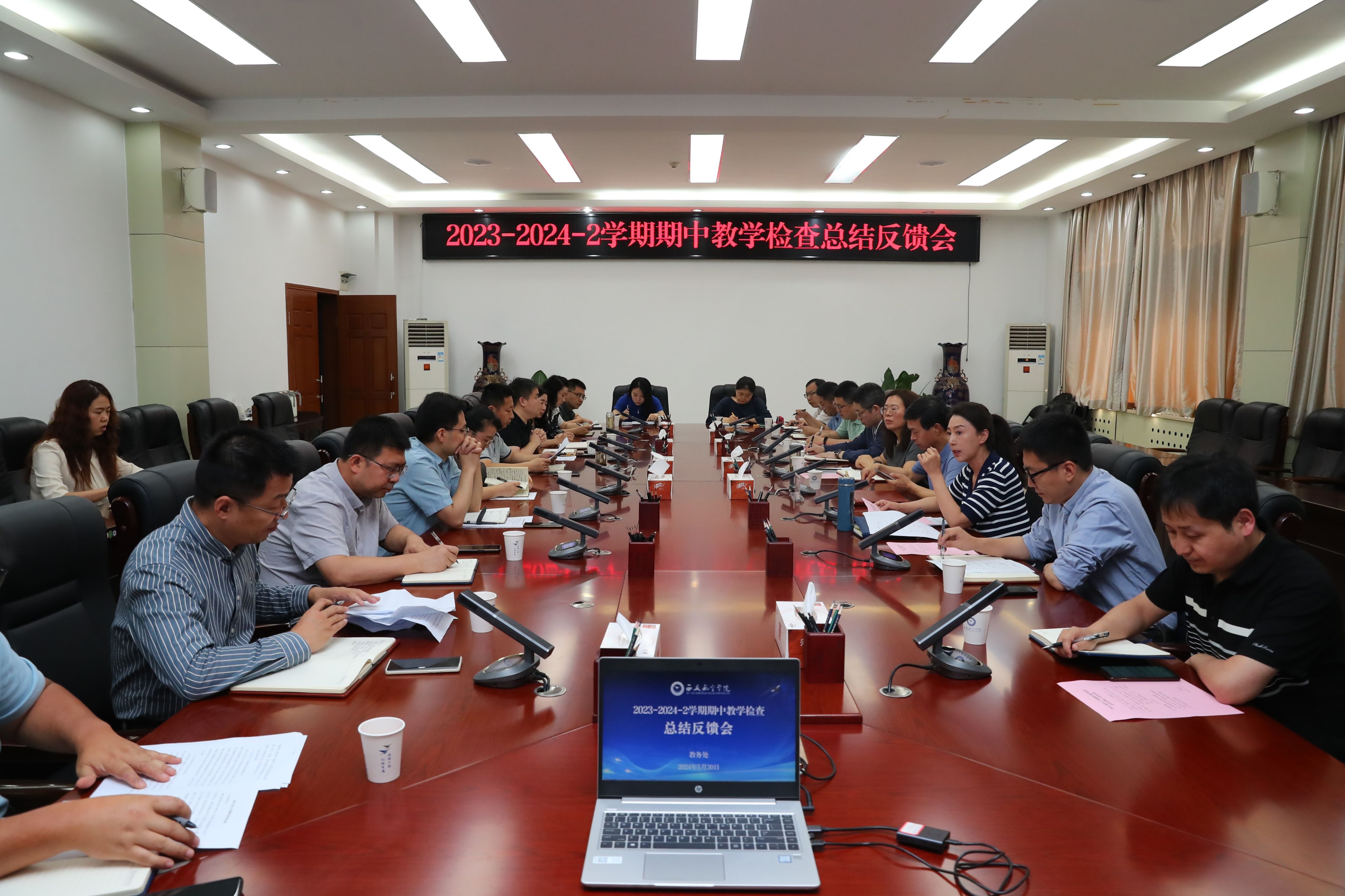 5月30日上午,学校在莲湖校区第三会议室召开2023-2024学年第二学期期中教学检查总结反馈会。副校长宋文学、教务处、学生工作部(处)、党委教师工作部(教师发展中心)、后勤保障处、网络信息中心负责人及各二级学院(部)教学副院长、工程训练中心负责人参加会议,会议由教务处副处长刘宁主持。