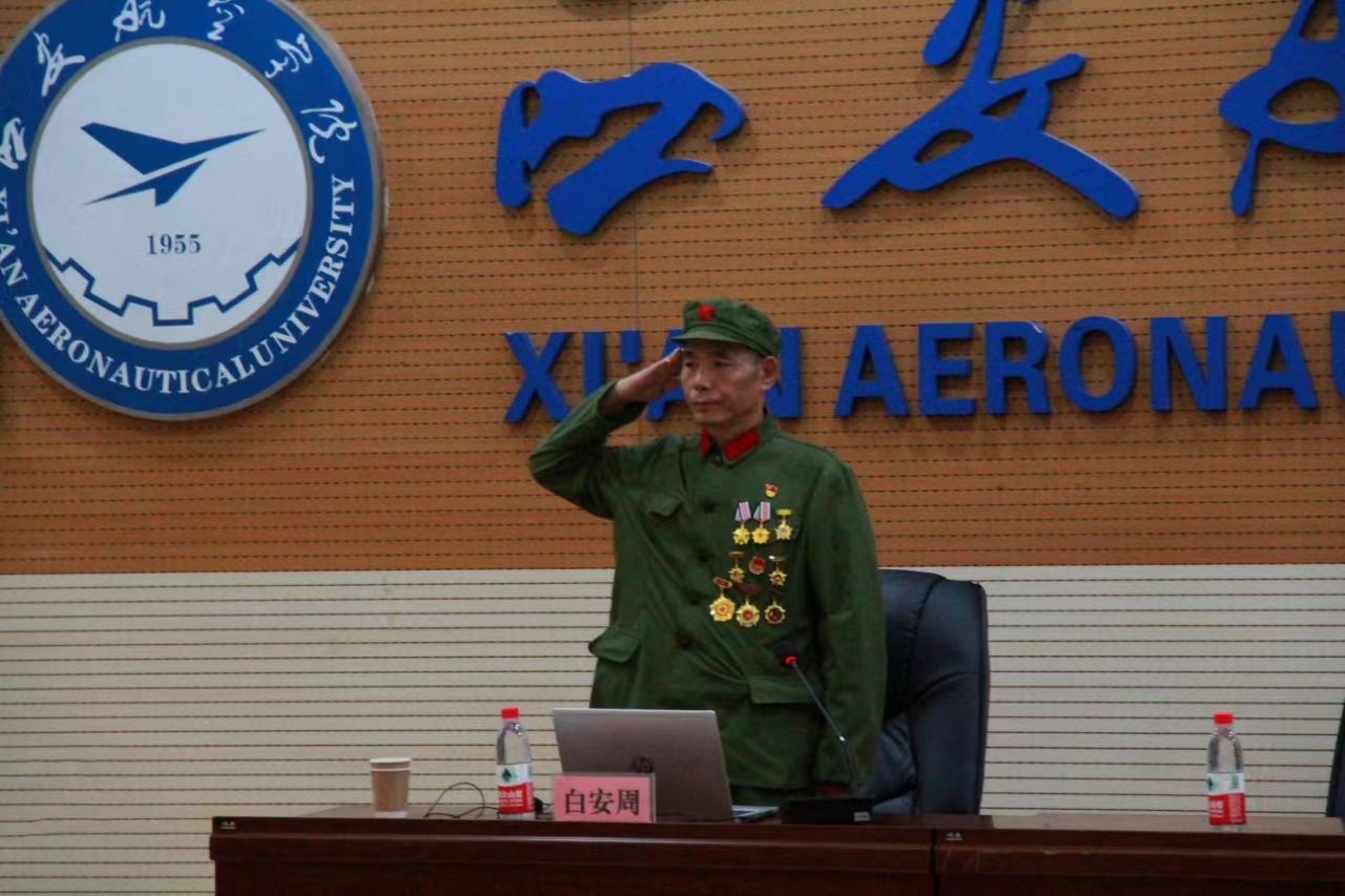 5月31日下午,学校在阎良校区报告厅举办强军战“翼”——英雄模范进校园国防教育主题报告会。特邀西安市关心下一代工作委员会、莲湖区退役军人事务局聘任的五老报告团退役老兵白安周同志以《传承红色基因赓续英模精神》为题,为师生代表作专题报告。会议由军士学院党总支书记李庆主持。