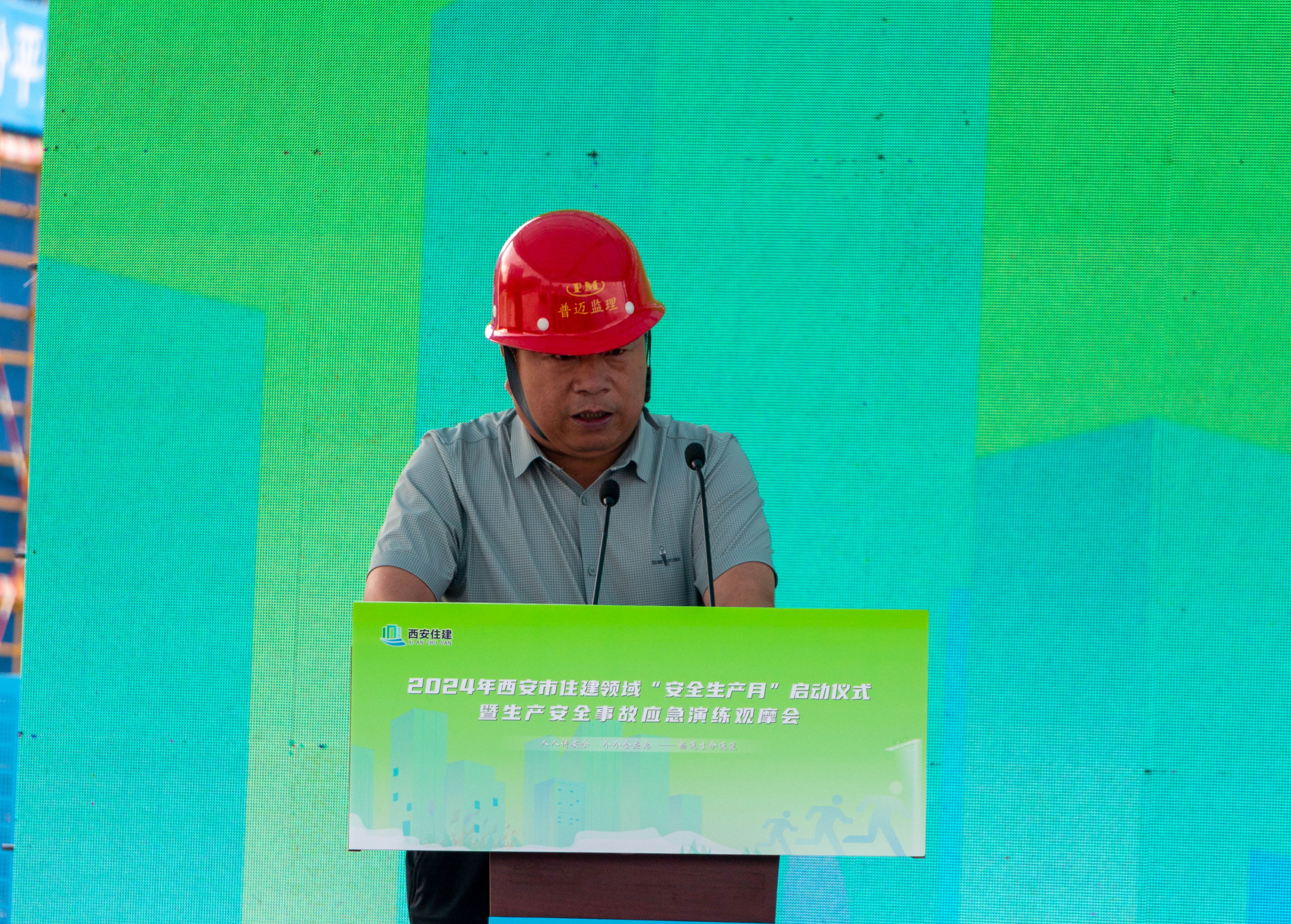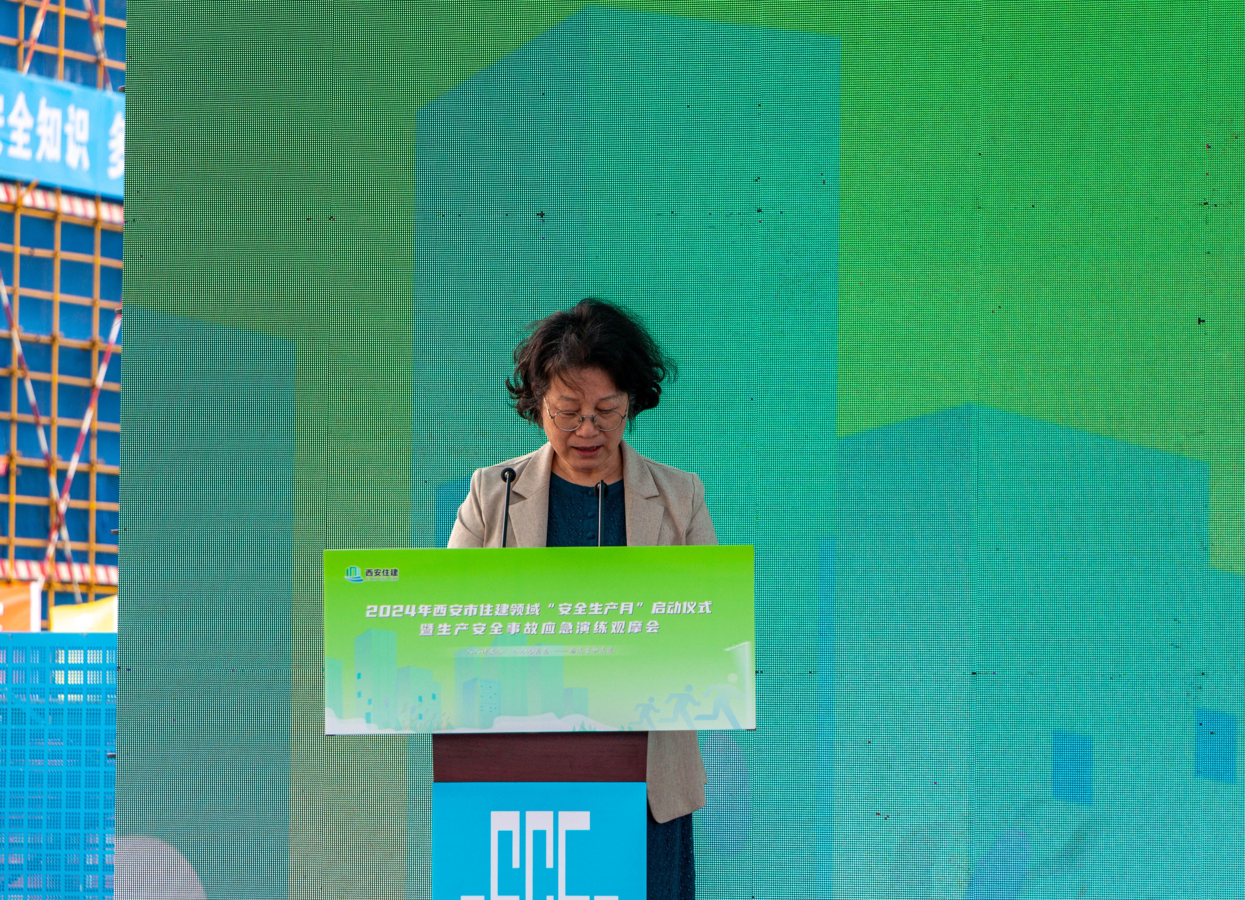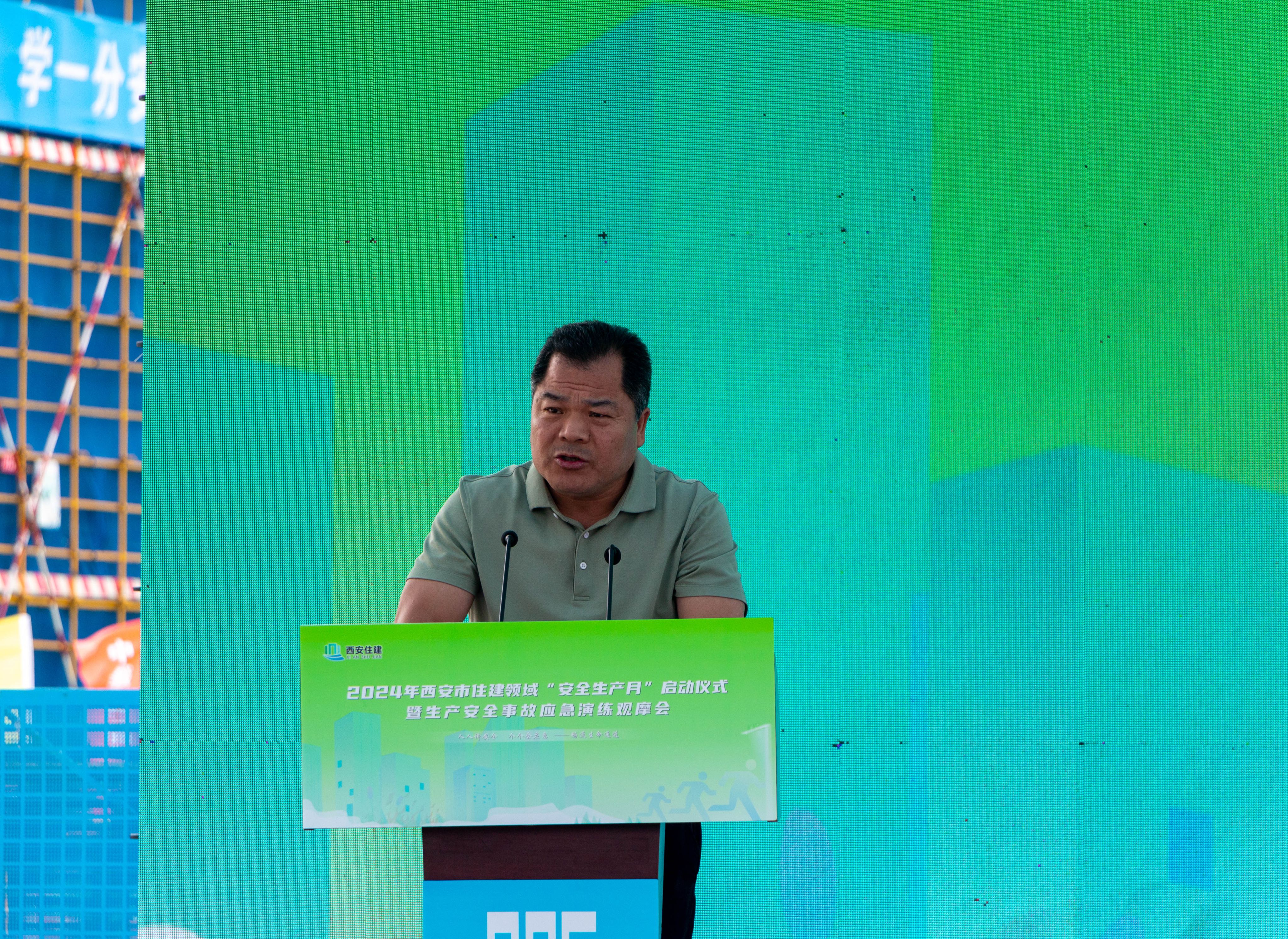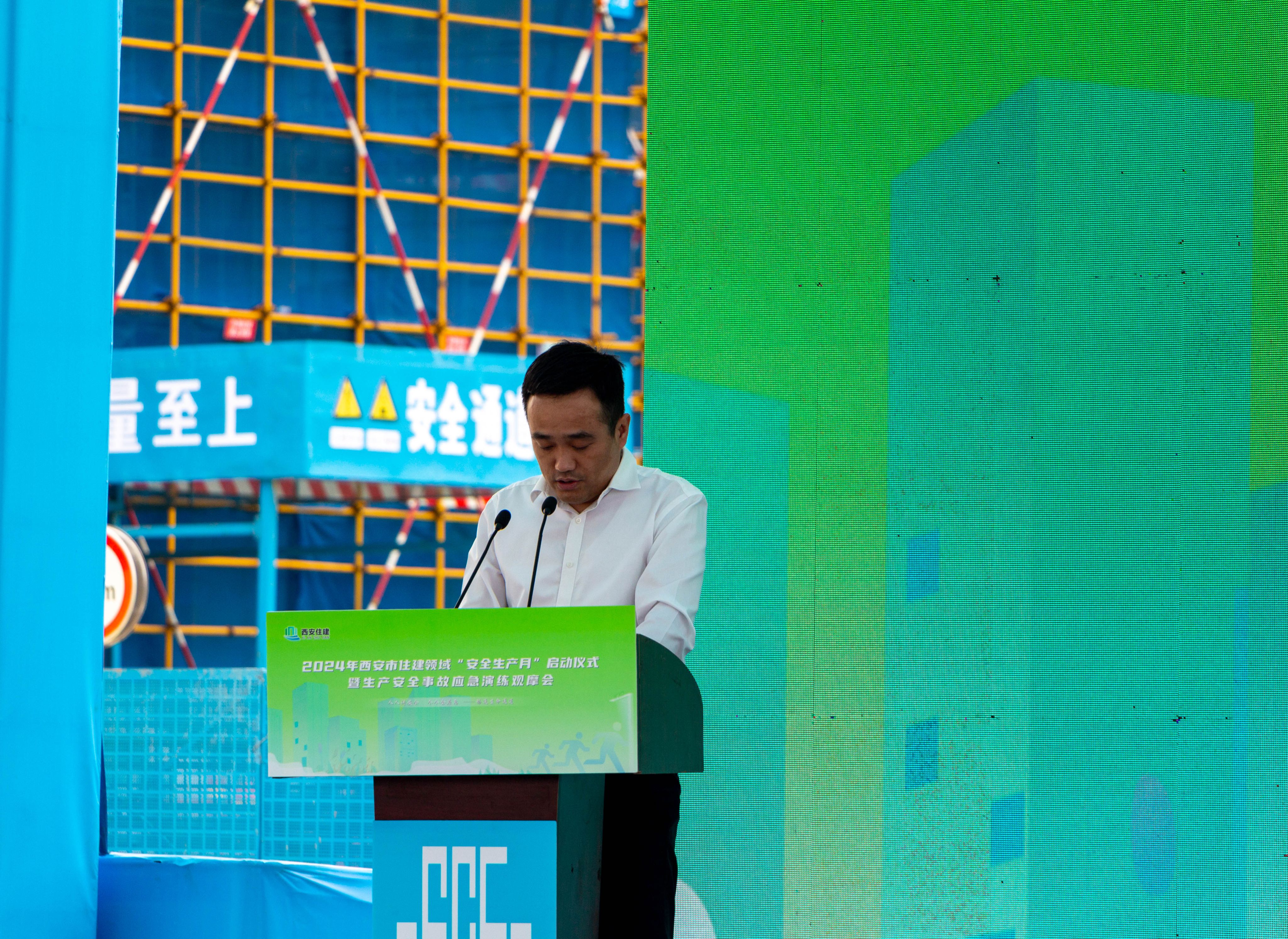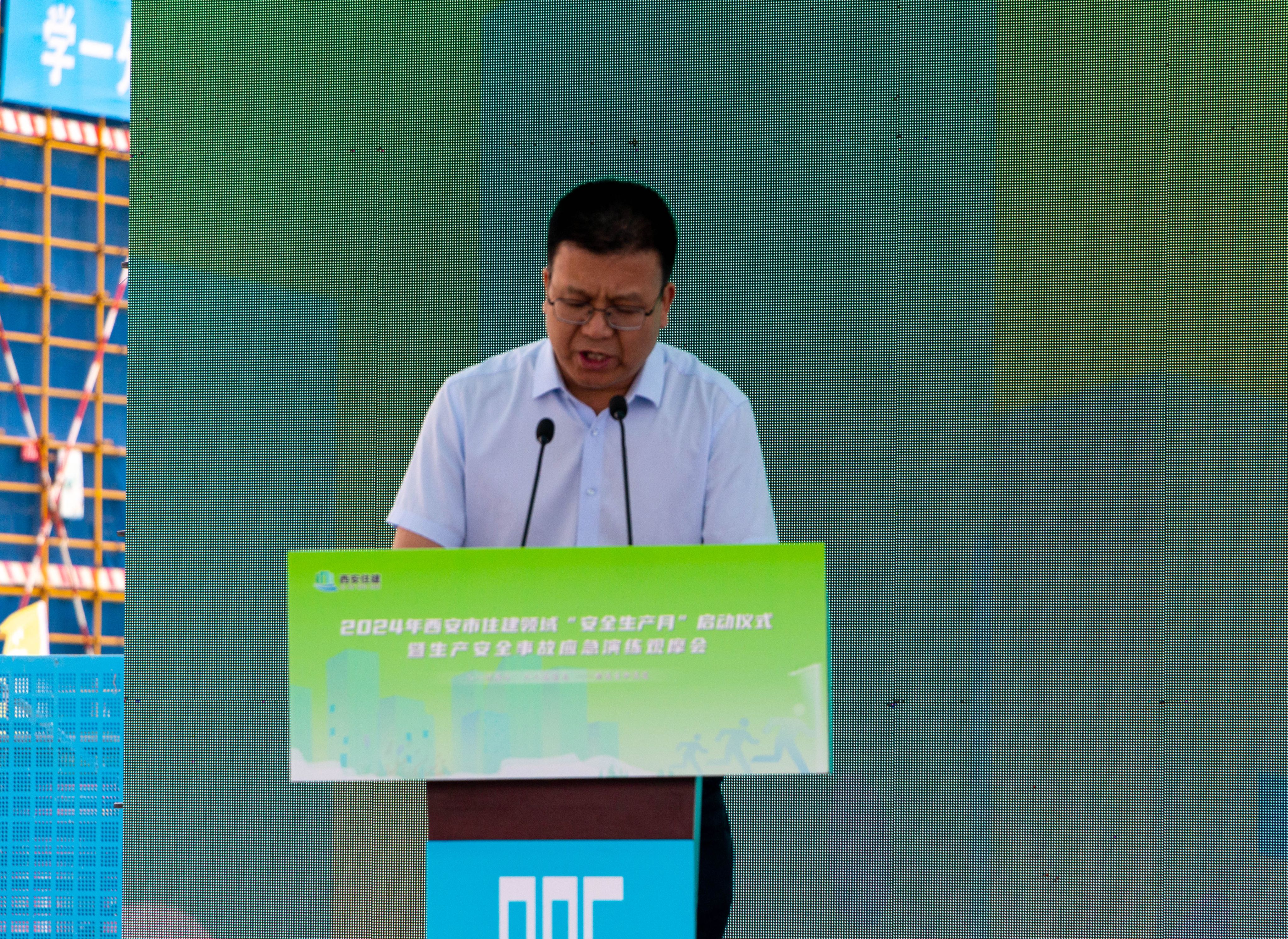 民航实验实训基地项目施工总包单位总经理梁二雷在发言中表态,将认真落实国务院安全生产行动部署和本次西安市住建领域“安全生产月”活动精神,牢固树立安全生产“双零”理念,以危机感和责任感狠抓安全生产措施,确保项目如期交付。