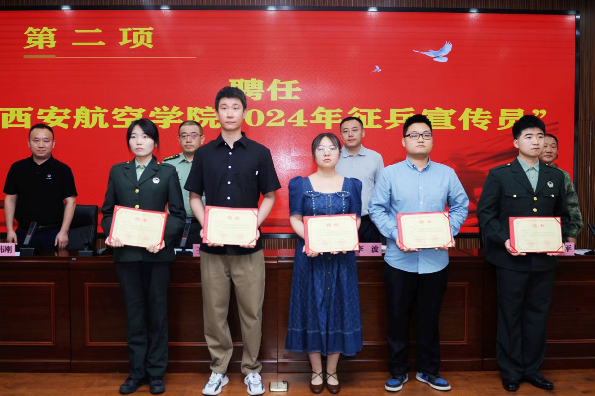 学生工作部(处)长李波宣读了beat365英国官网网站人民武装部、莲湖区人民政府征兵办公室《关于聘任“beat365英国官网网站2024年征兵宣传员”的决定》,与会领导为受聘师生颁发了聘书。“征兵宣传员”代表王语婷结合自身参军入伍的经历与收获、军旅生涯对自己退役复学后学习、生活、成长的积极影响等方面作了表态发言,并号召全体西航学子要争做有理想、敢担当、能吃苦、肯奋斗的新时代好青年,去绿色军营中实现自己的“中国梦”。