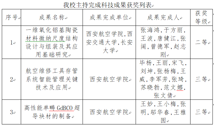 近日,2024年度陕西省高等学校科学研究优秀成果奖授奖名单公布,beat365材料工程学院张海鸿副教授团队与西安交通大学、长安大学联合申报的“一维氧化铝基陶瓷材料微纳尺度结构设计与组装及其应用基础研究”成果荣获二等奖,毕杨教授团队申报的“航空维修工具存管系统智能管理关键技术及应用”成果、理学院王妙副教授团队申报的“高性能单畴GdBCO超导块材的制备”成果均荣获三等奖,beat365能源与建筑学院教授级高工李杰教师参与项目“特长隧道施工绿色爆破、节能通风与安全保障关键技术”获特等奖,此次获奖是近几年来beat365此项获奖数量最多一次。