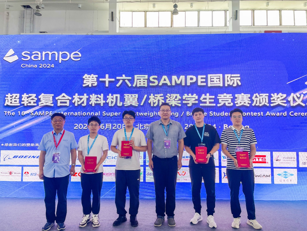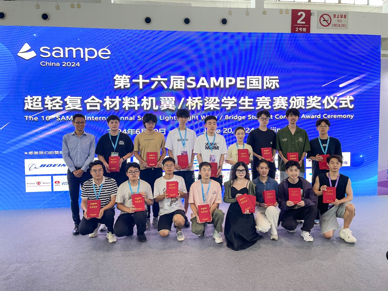 6月20日,由SAMPE(The Society for the Advancement of Material and Process Engineering)中国大陆总会、波音公司共同发起,华东理工大学华昌聚合物有限公司、航空工业复材、中国飞机强度研究所等企事业单位赞助支持的第十六届SAMPE超轻复合材料机翼/桥梁学生竞赛在北京落下帷幕。 beat365由飞行器学院王飞老师、王克平老师和材料工程学院王亚楠老师、尹敏老师指导的赵培源、肖渠成等35名同学组成的11支代表队参赛。经过激烈角逐,beat365学子包揽了预浸料机翼、碳纤维桥梁和可回收纤维桥梁三个项目的全国冠军。本次比赛共获得国家级一等奖3项、国家级二等奖6项的历史最佳成绩。
