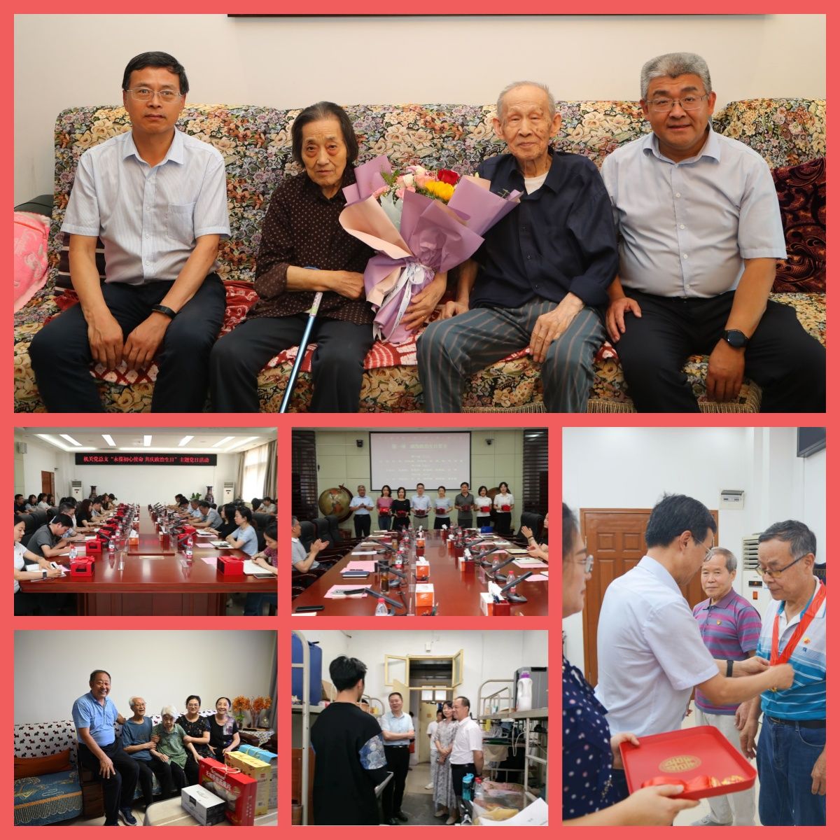 关怀慰问聚党心。为加强党内关怀、传递组织温暖,充分展现党组织对老党员、困难师生党员的关心爱护,各基层党组织以不同形式开展了走访慰问活动,亲切送上节日祝福。学校领导前往家中慰问老党员,为他们送去党组织的温暖和关怀;离退休党总支代表学校党委为10名入党超过50周年的老党员颁发“光荣在党50年”纪念章,表达对他们坚守初心使命的致敬;机关党总支为6月份过政治生日的党员代表举行集体庆祝仪式,鼓励机关党员干部立足岗位、凝心聚力、踔厉奋发,为学校高质量发展做出机关贡献。