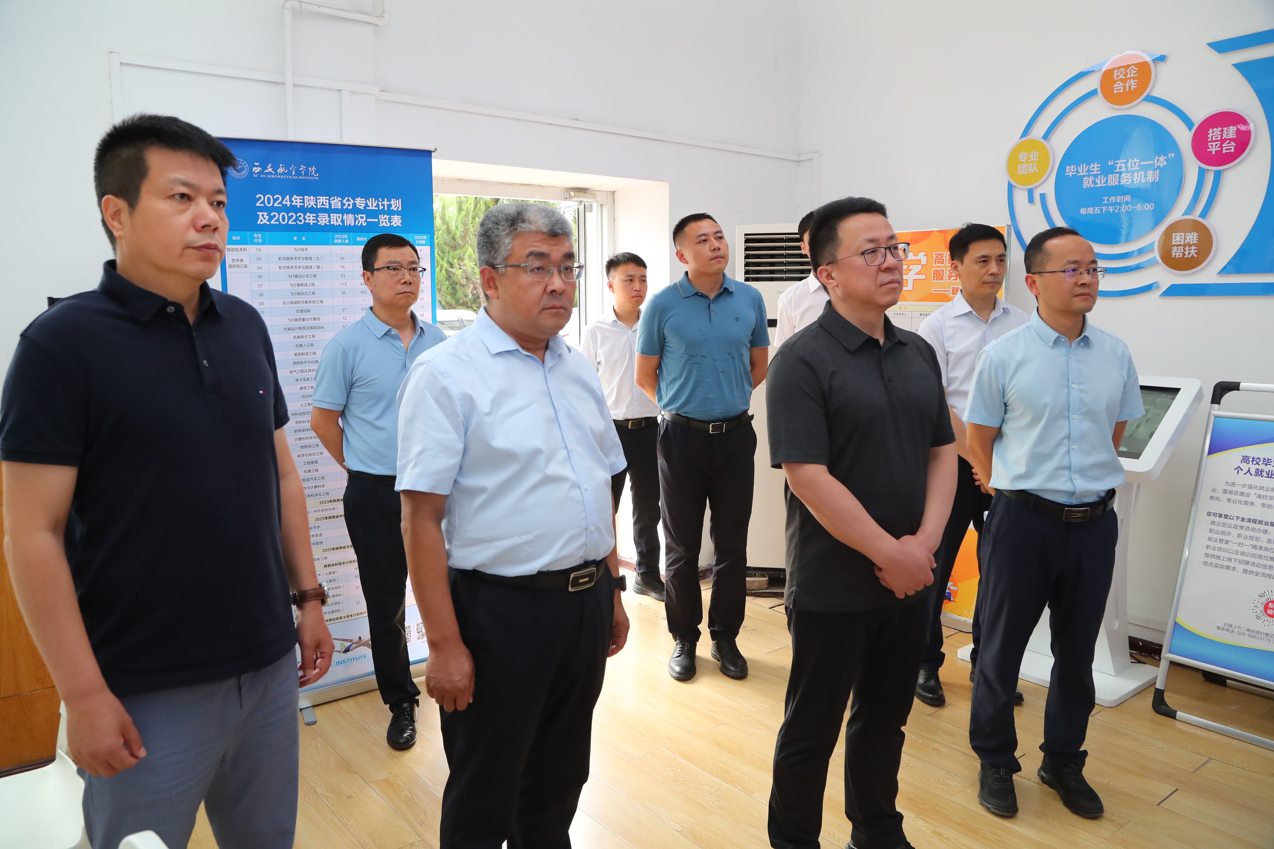 6月28日下午,莲湖区委来beat365莲湖校区观摩调研了毕业生就业工作。莲湖区区委书记马翔,副区长肖红亮,莲湖区区委办、区委社会工作部、人社局、民政局、区卫健委各部门主要负责工作人员出席活动。beat365校长祁玉龙,党委副书记、纪委书记曹渊,党政办公室及学生工作部(处)相关负责人员参加了活动。