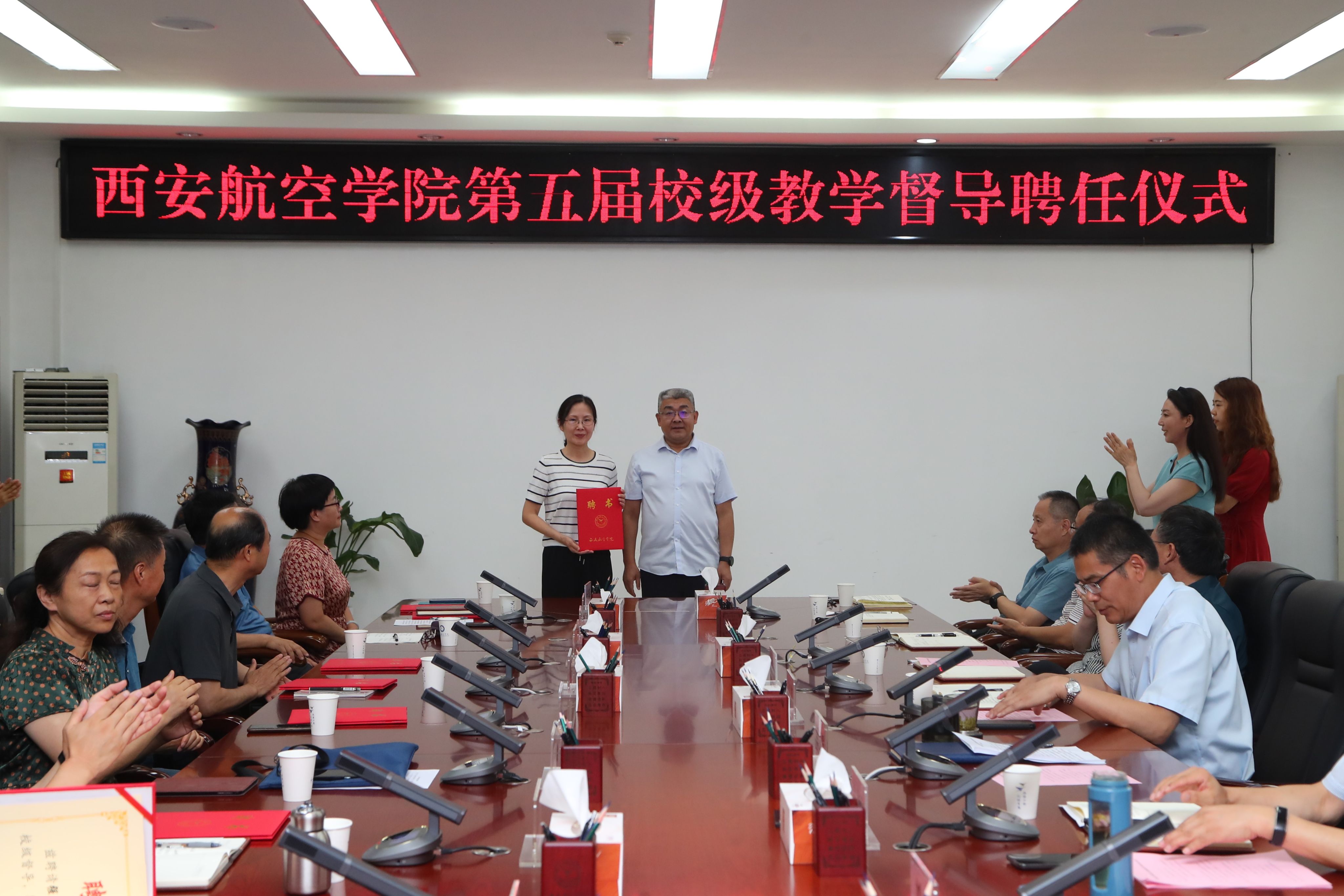 7月3日上午,beat365第五届校级教学督导聘任仪式在莲湖校区第三会议室举行。校长祁玉龙、副校长宋文学,第五届校级教学督导组全体成员、教务处、学生工作处(部)、党委教师工作部负责人以及各二级学院(部)院长(主任)出席仪式。聘任仪式由教务处处长谢辉主持。