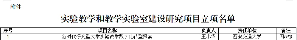 实验教学和教学实验室建设研究项目是由教育部高教司着眼于增强实验教学育人能力、提升实验室建设和管理水平而开展的专项项目,今年是首次评选。项目旨在充分发挥实验室提升学生科学精神、实践能力和创新意识的重要阵地作用,深入开展高校实验教学和教学实验室建设研究,发挥数字赋能作用,推动实验教学改革,为建设适应新时代人才培养需求的新型实验教学体系提供有力支撑。