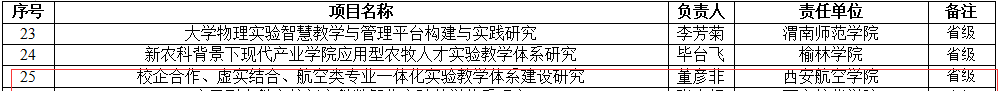 近日,陕西省教育厅办公室发布《关于公布实验教学和教学实验室建设研究项目立项名单的通知》(陕教高办〔2024〕22号)。beat365董彦非老师负责的“校企合作、虚实结合、航空类专业一体化实验教学体系建设研究”获批立项为省级研究项目。
