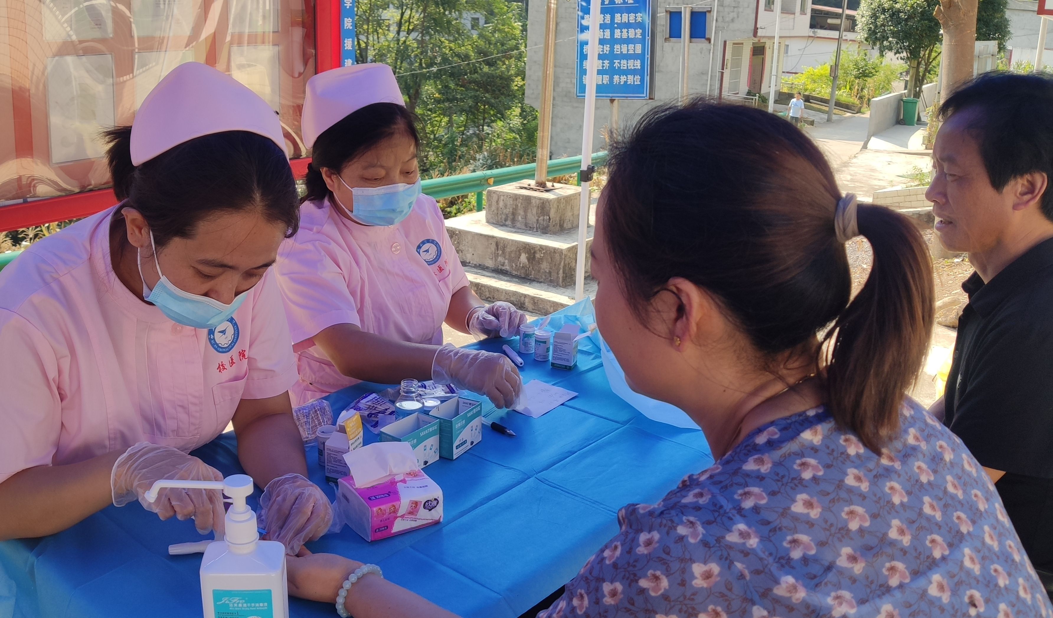 活动现场,前来接受义诊的村民络绎不绝,医护人员认真地为村民免费量血压、测血糖,详细地询问就诊群众的身体状况,耐心细致地检查、分析病情,帮助解读村民既往体检报告,免费发放常见病常用药等,同时举办了高血压、糖尿病、肺结核病等常见慢性病的健康知识讲座。