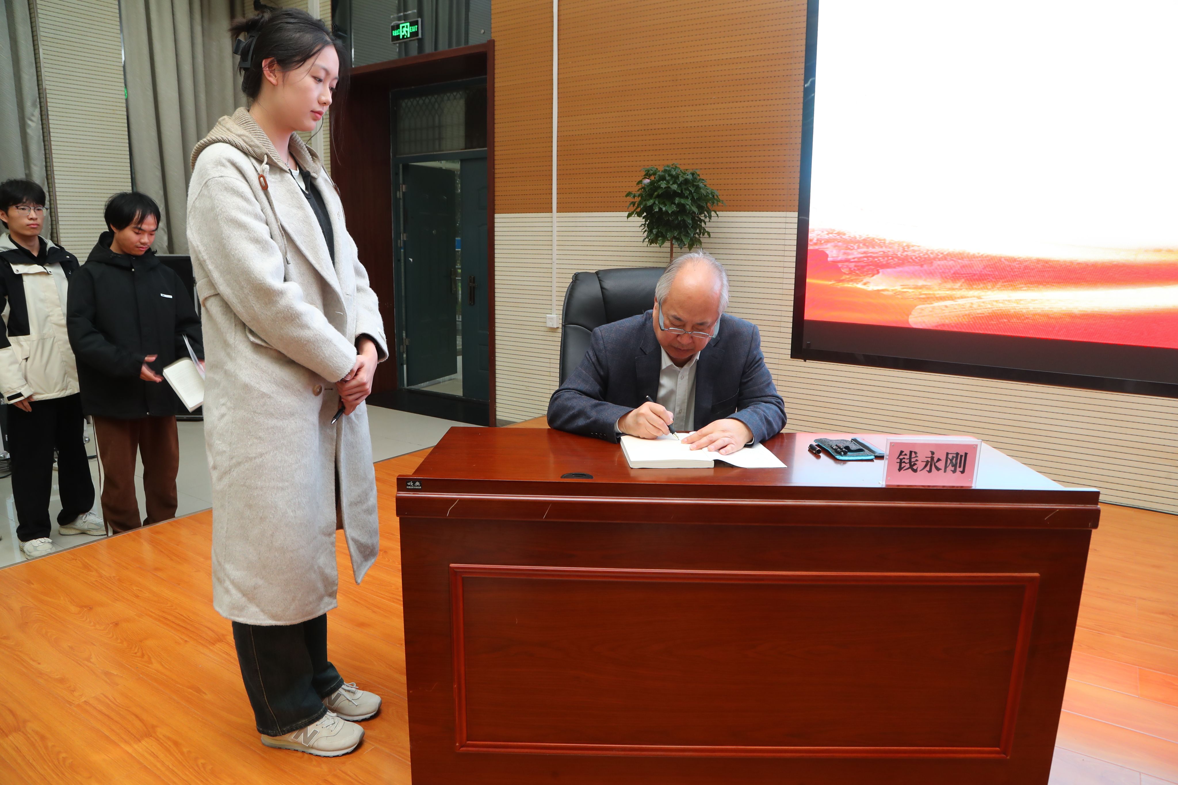 在互动交流环节,钱永刚教授对同学们寄予了殷切的希望,他引用《钱氏家训》“利在一身勿谋也,利在天下必谋之”,勉励同学们“以家国情怀为本,立科技报国之志”。钱永刚教授的精彩讲座让同学们深受激励,纷纷表示要弘扬科学家精神,争做时代追梦人。