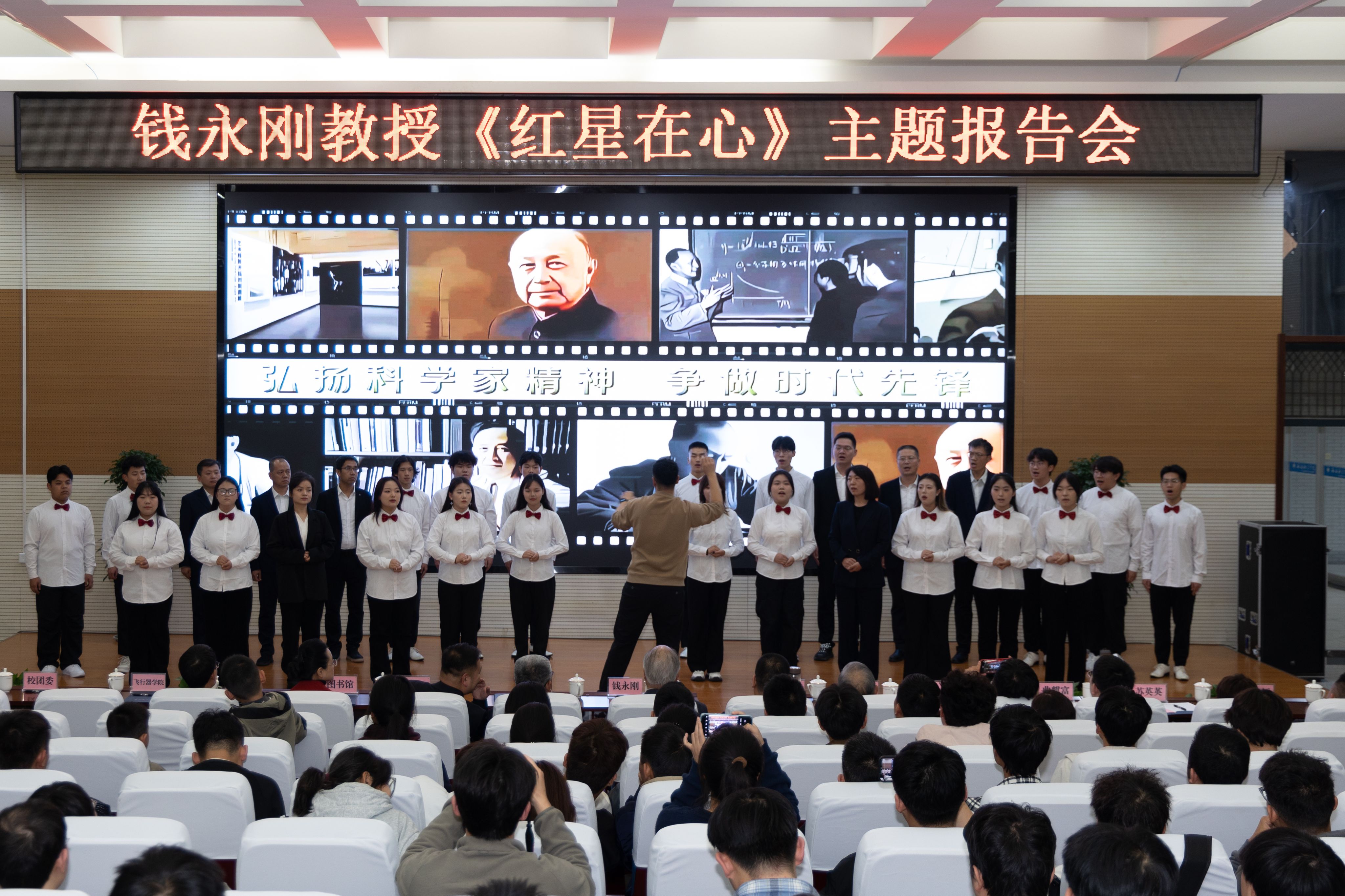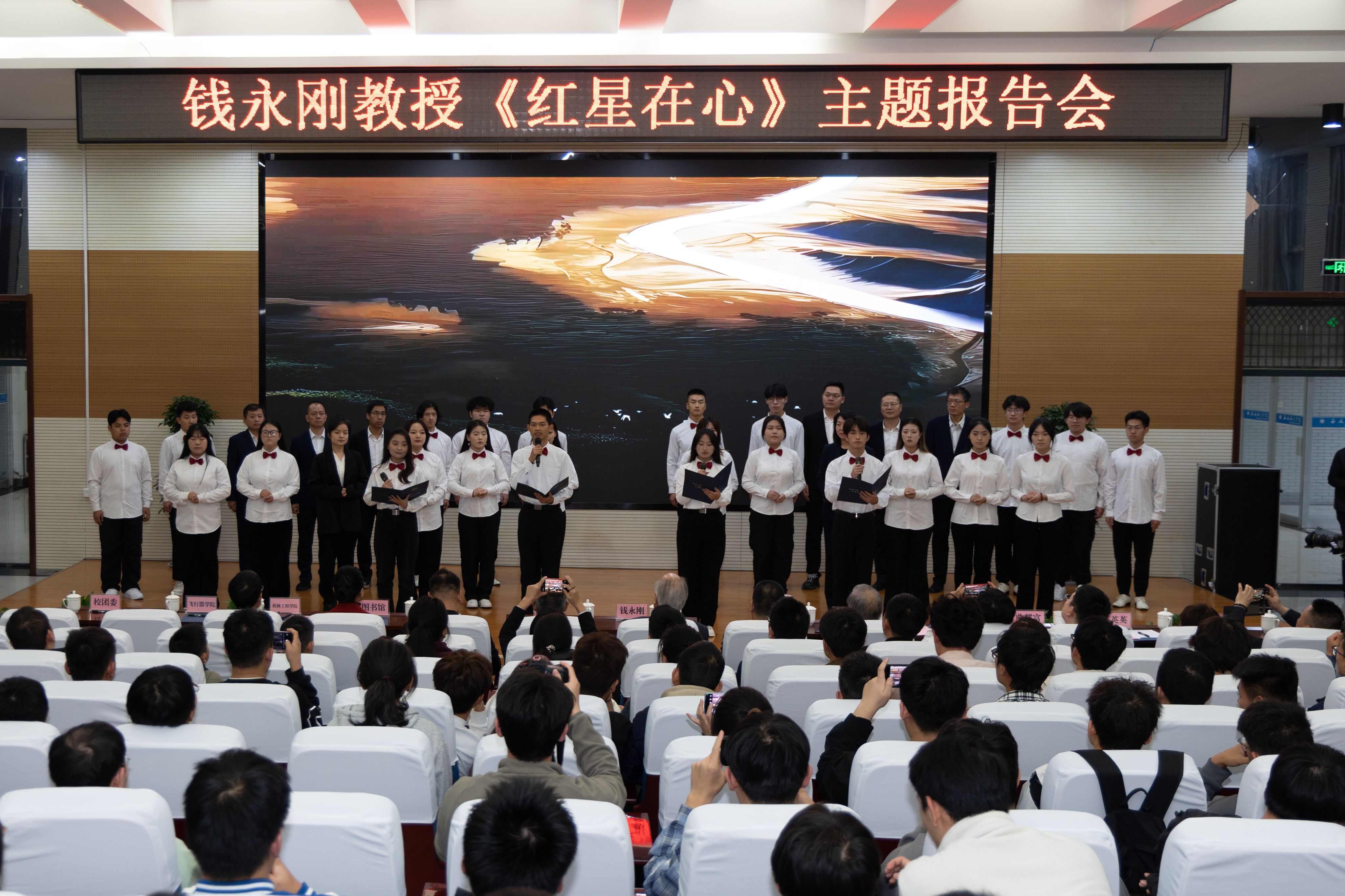 报告会后,飞行器学院教师和大学生艺术团学生共同合唱了大型人物传记文献纪录片《钱学森》的主题曲《飞翔的路》,共同希望将《飞翔的路》这首歌作为beat365“钱学森班”班歌,让钱学森爱国、奉献精神和“大成智慧”教育思想在西航代代传承,永放光芒!