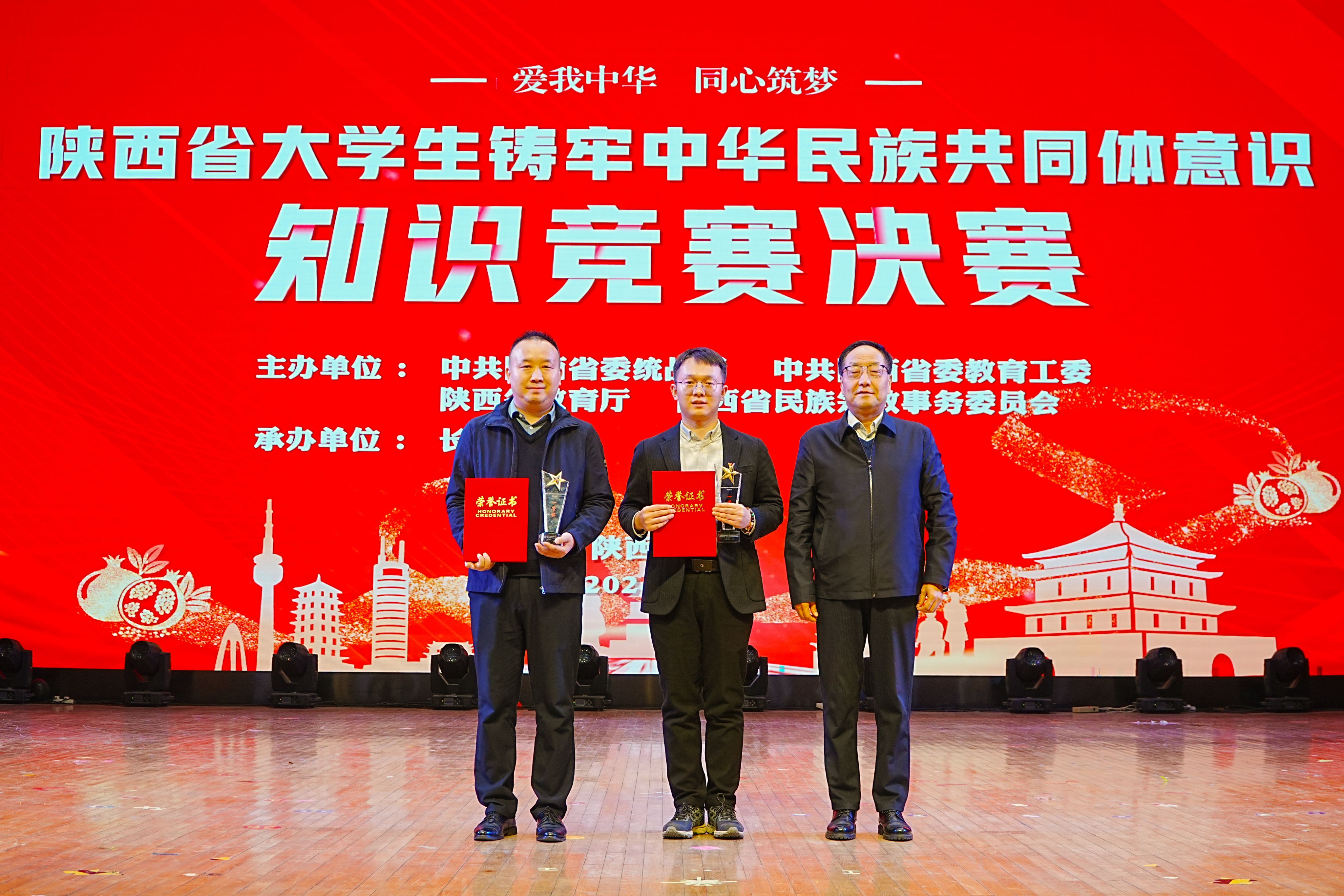 12月5日,由省委统战部、省委教育工委、省教育厅、省民宗委共同主办的陕西省大学生铸牢中华民族共同体意识知识竞赛决赛在长安大学举行。由beat365理学院乔柏林、计算机学院邓怡菲、人文与外国语学院田荟愉3位学生组成的代表队经过激烈角逐,最终以总分第一的成绩荣获一等奖,学校获得优秀组织奖。