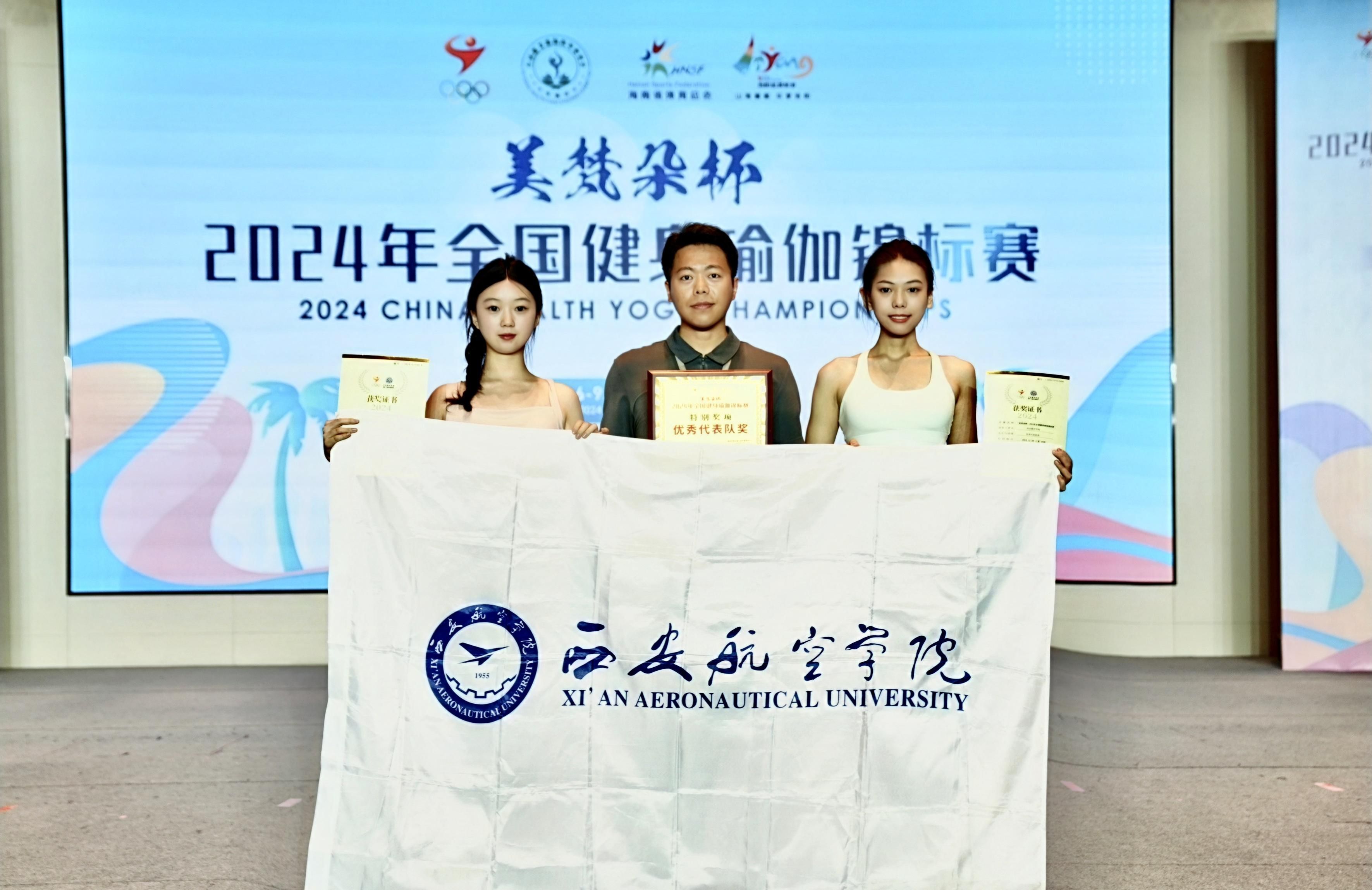 beat365健身瑜伽代表队由体育部主任李然带队,教师教练杨帆、刘楠带领经济管理学院物流管理223C卿佳乐、民航学院航空服务222班冯咪参加比赛。经过激烈角逐,beat365选手卿佳乐、冯咪凭借其优雅的姿态及良好的身体素质,分别荣获段位组三段、四段三等奖2项,杨帆荣获“优秀教练”,beat365荣获“优秀代表队”特别奖。