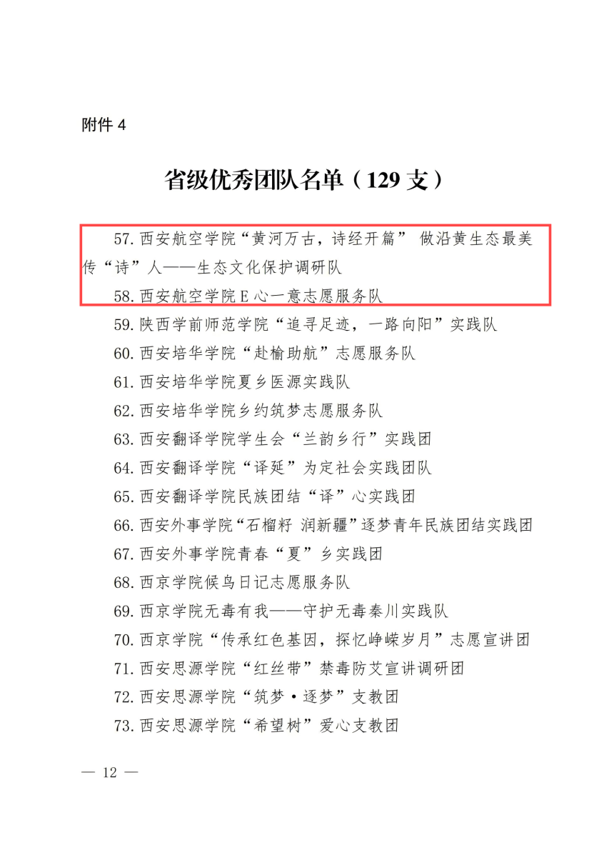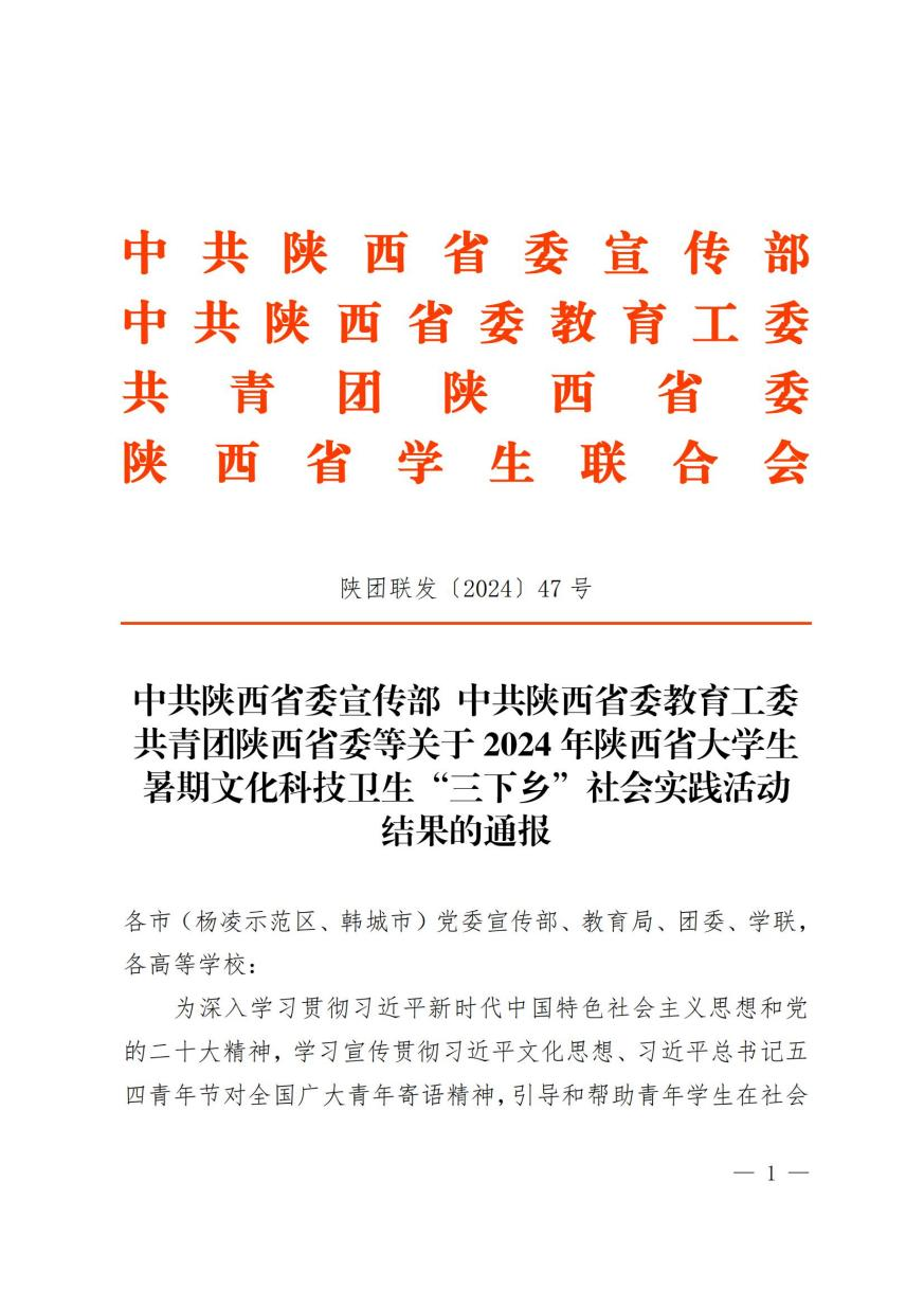 近日,中共陕西省委宣传部、中共陕西省委教育工委、共青团陕西省委等部门联合印发的《关于2024年陕西省大学生暑期文化科技卫生“三下乡”社会实践活动结果的通报》公布。beat365“黄河万古,诗经开篇”做沿黄生态最美传“诗”人——生态文化保护调研队、E心一意志愿服务队获省级优秀团队。