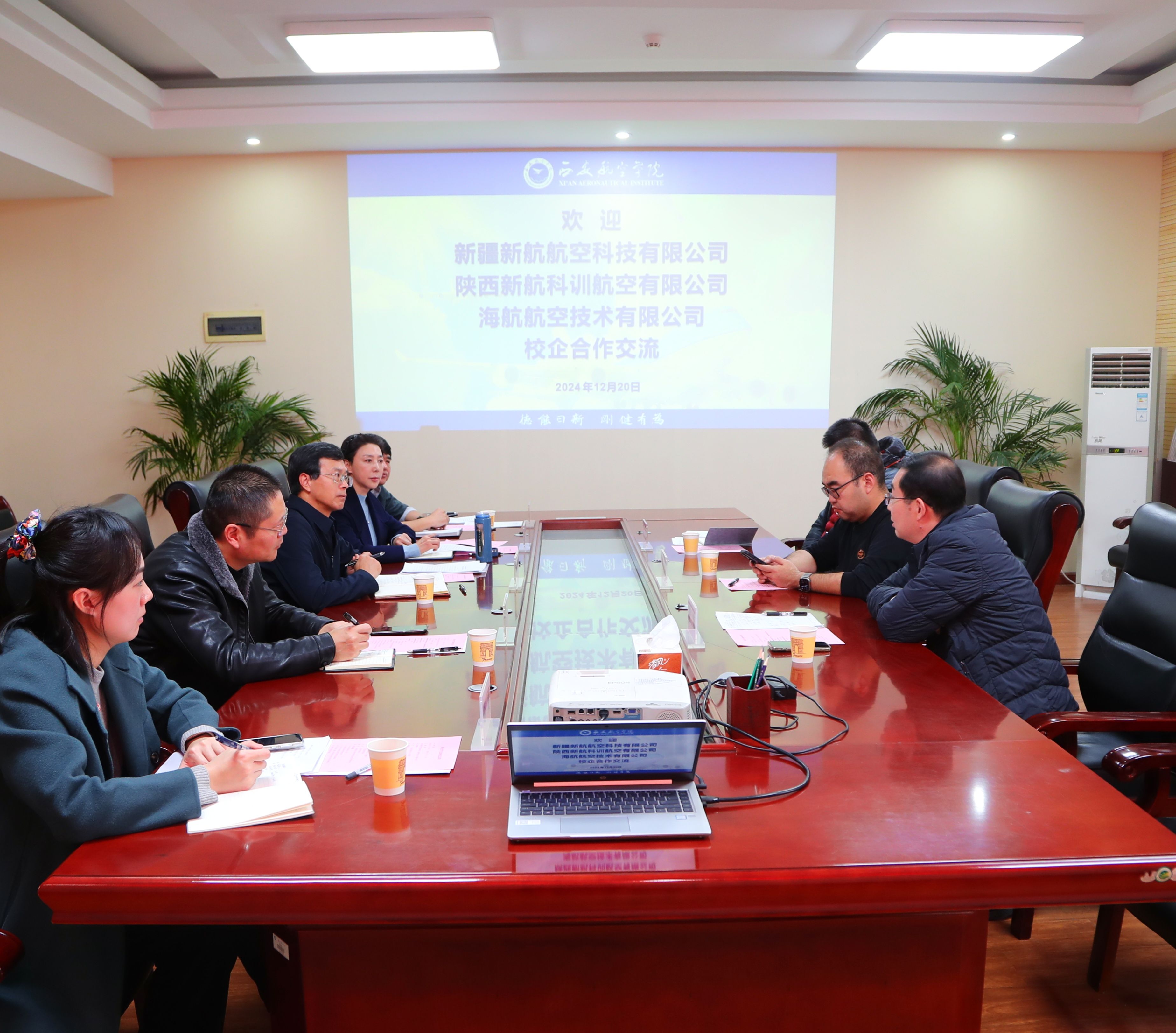 12月20日下午,新疆新航航空科技有限公司、陕西新航科训航空有限公司总经理吴光焱、海航航空技术有限公司西北基地总监蒙海、陕西新航科训航空有限公司副总经理刘洋,来校就校企合作开展交流座谈。副校长宋文学、教务处副处长刘宁、发展规划与学科建设处及相关学院负责人参加座谈会,会议由刘宁主持。