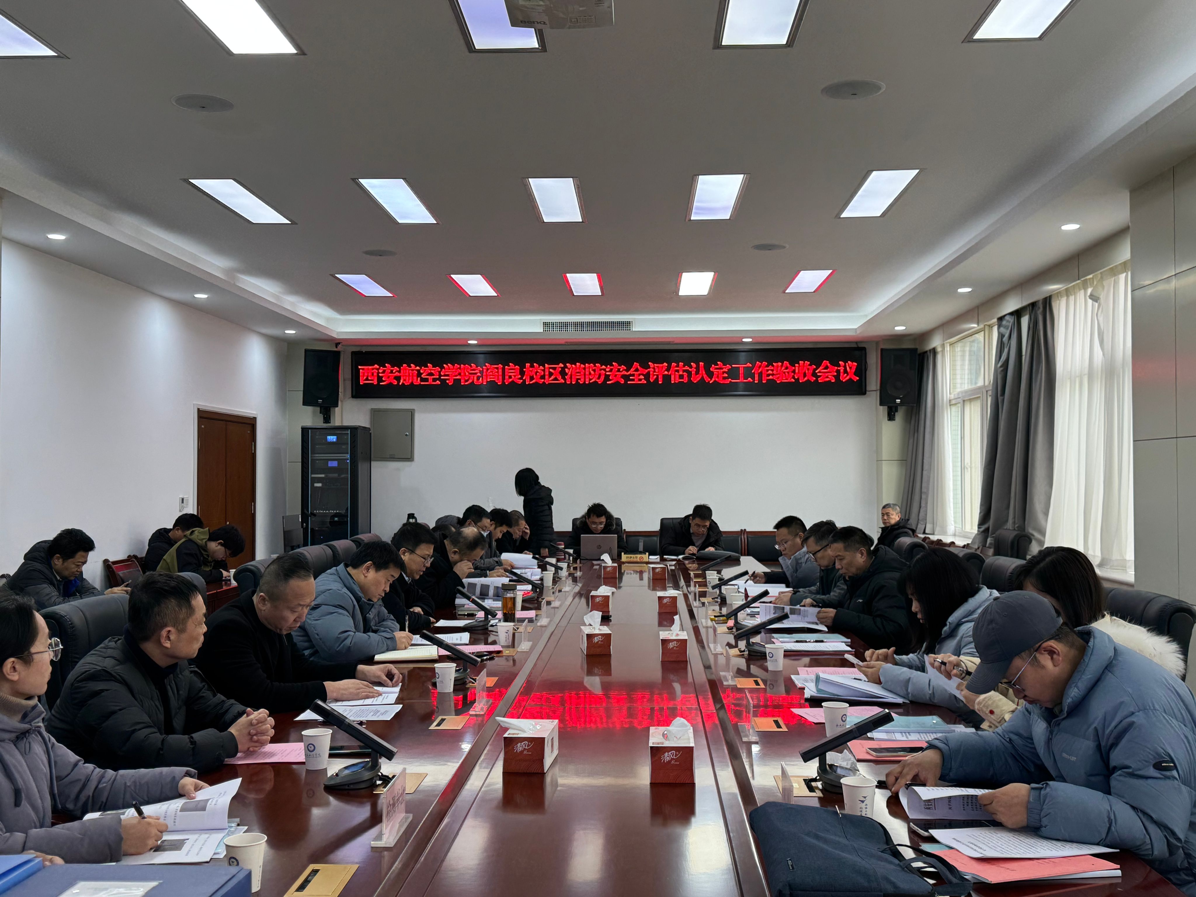 基建处副处长段高陵向专家组汇报了阎良校区非公寓楼消防整改情况工作汇报。专家组现场进行了提问,学校基建处部门负责人及相关工作人员对专家提问做了答复。