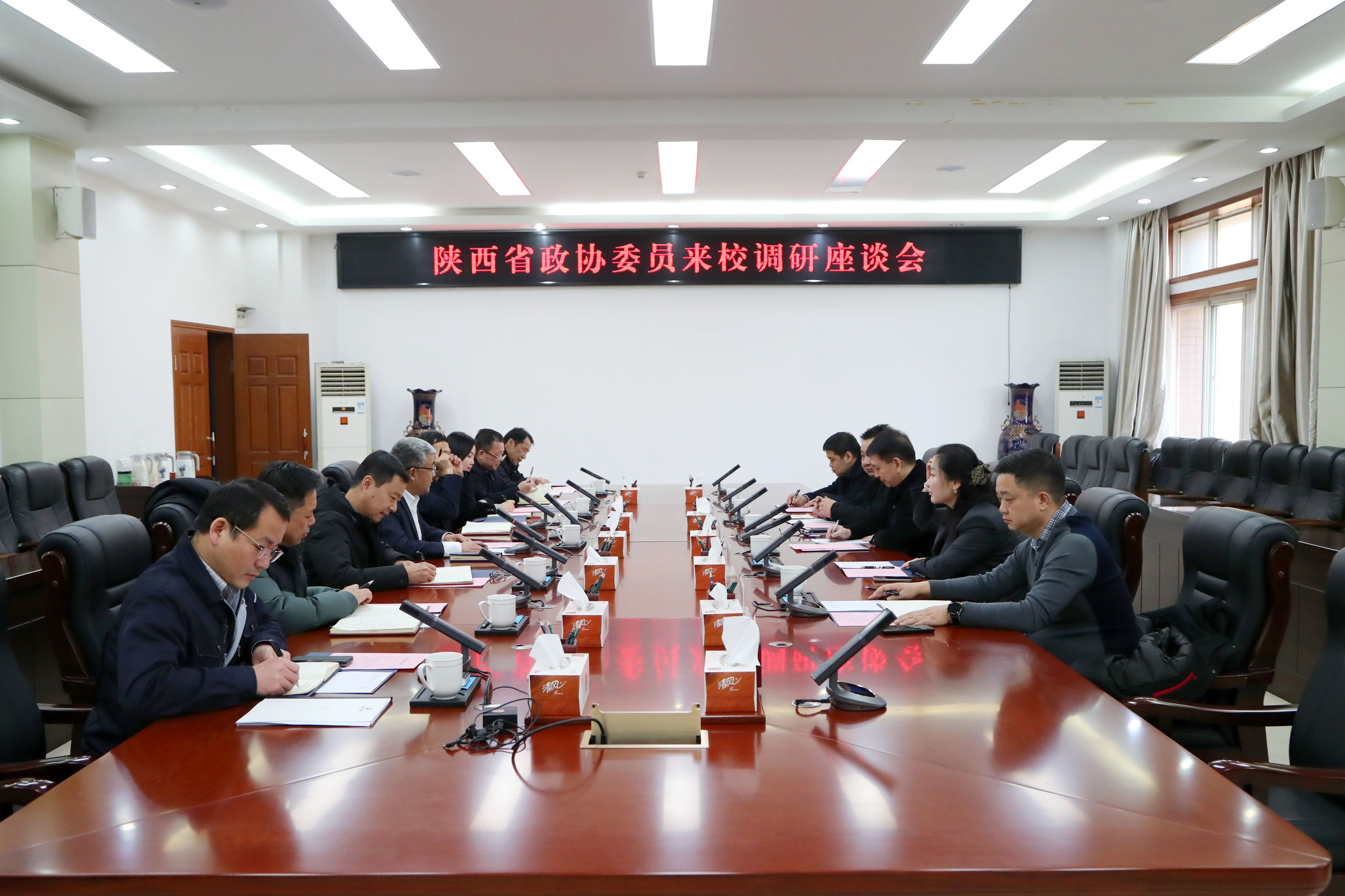1月13日下午,陕西省政协委员、延长石油集团首席经济学家蒲小川,陕西省政协委员、陕西成功教育科技有限公司总裁陈聪,陕西金控资产管理公司总经理孙伟涛,延安典源基金总经理李冬,陕西成功教育科技有限公司副总经理张波一行5人到beat365调研并召开座谈会。党委书记祁玉龙、副校长宋文学出席座谈会,党政办公室、科技处、国有资产与实验室管理处、液压技术研究院、校办工厂等单位负责人参加座谈会,会议由宋文学主持。