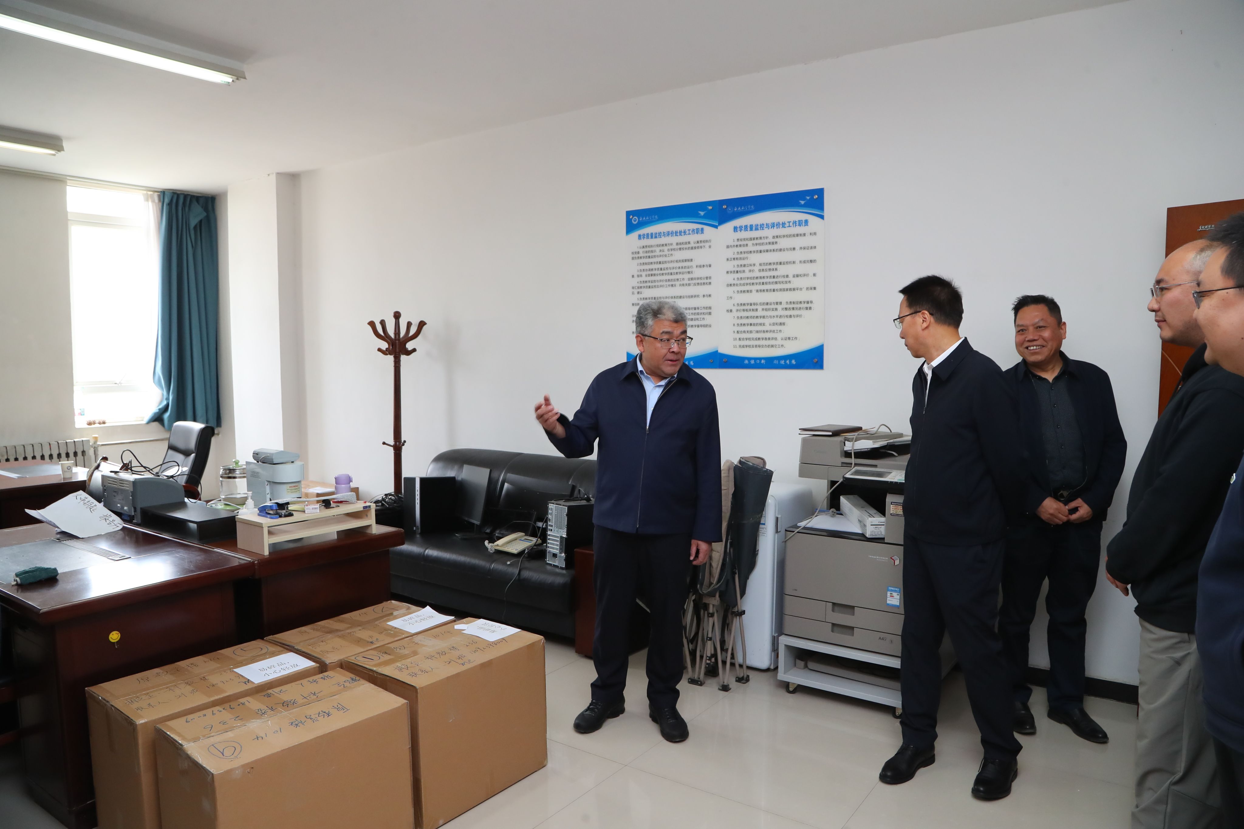 自3月14日学校成立行政主体进驻阎良校区工作专班以来,学校通过多次推进会细化方案、统筹协调。党政办公室、国有资产与实验室管理处、后勤保障处、财务处等部门协同发力,完成北迁方案制定、办公用房调整及住宿保障、经费预算审核、立项招标等前期工作。