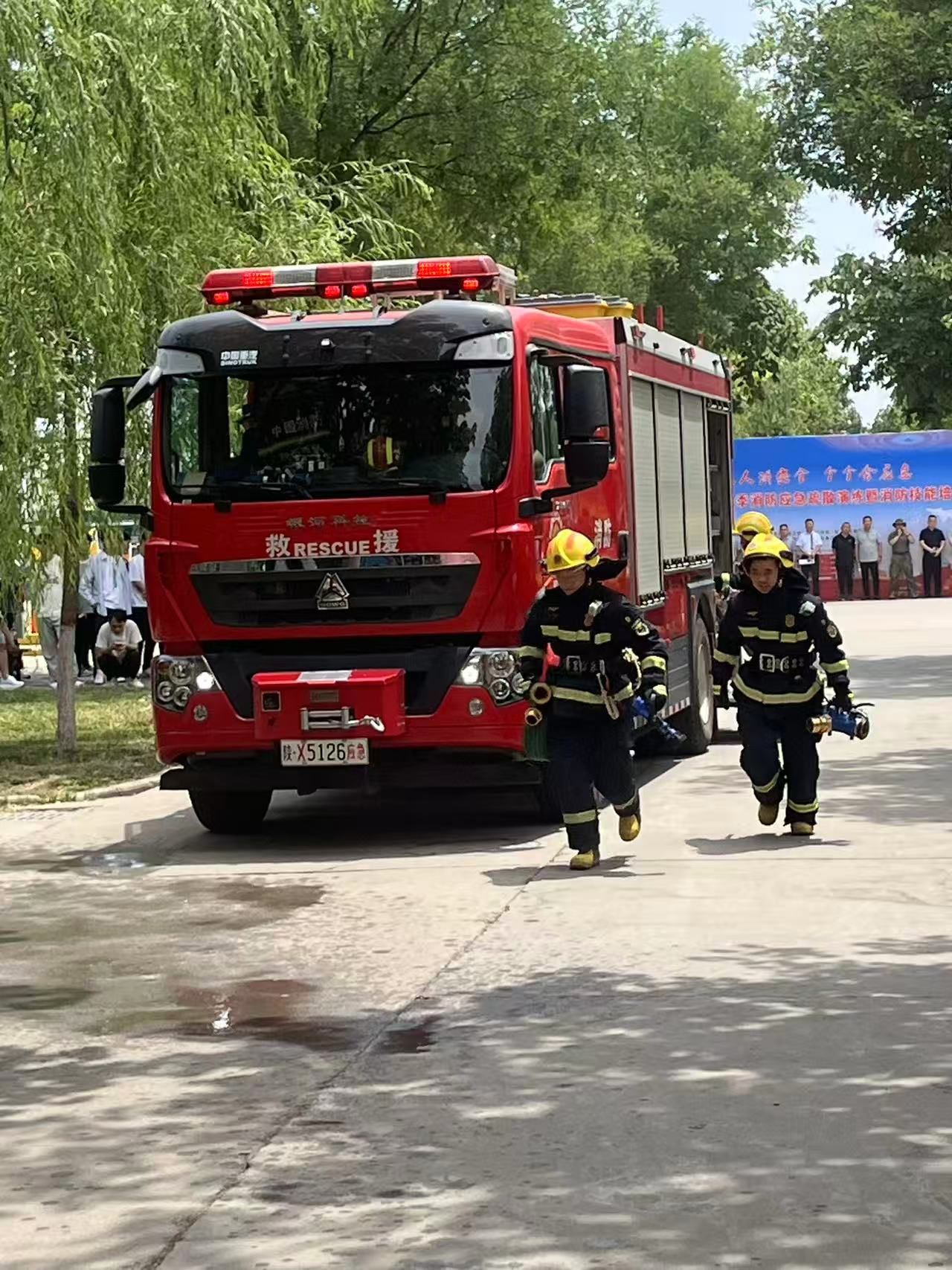 为进一步强化校园安全体系建设,检验师生安全教育成效,切实提升全员消防安全应急处置能力,5月21日中午,学校联合阎良区消防救援大队共同组织开展了春季消防应急疏散及灭火实战演练活动,学校党委副书记宁永录、阎良消防救援大队工程师夏玮伯、学生工作(部)处、后勤保障处、校团委、二级学院党总支书记参加了演练活动。阎良校区全体师生、后勤保障处、校医院、餐饮中心工作人员等消防重点部位约8500余人参与了应急疏散及灭火实战演练。