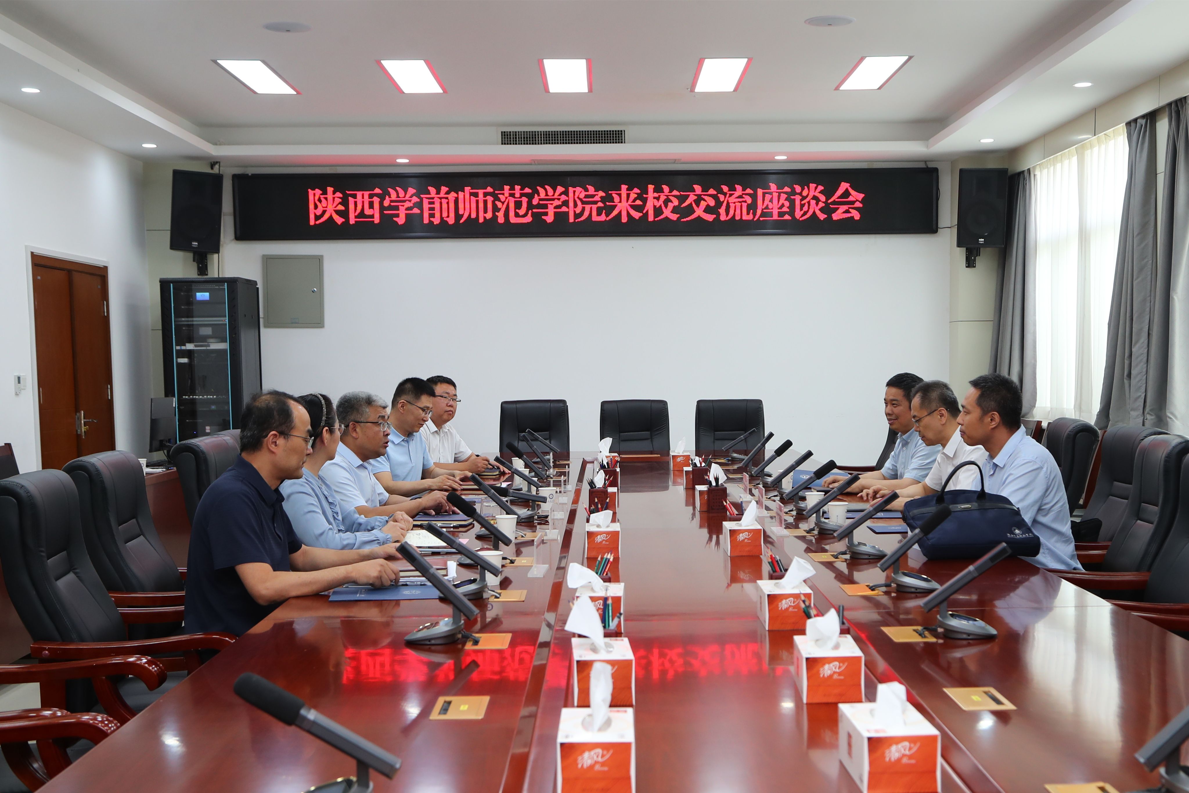 5月21日,陕西学前师范学院校长张健一行3人来校交流。党委书记祁玉龙、副校长许文丹,发展规划与学科建设处、对外交流与合作处、科技处等部门负责人参会。