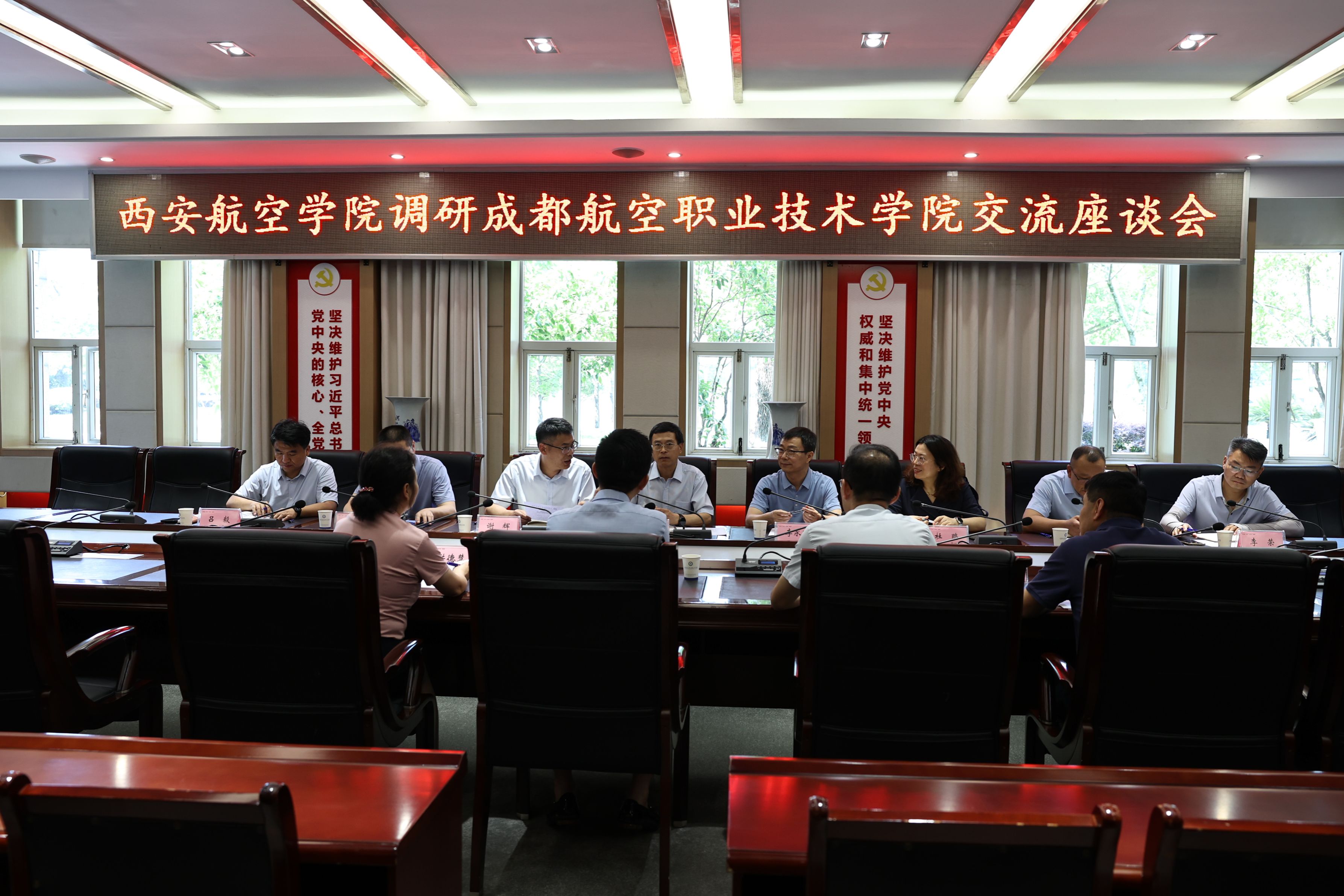为强化校企合作、产教融合成效,提升beat365应用型人才培养质量,2025年5月20日至21日,副校长宋文学带领党政办、教务处、飞行器学院、车辆学院、民航学院及CCAR-147维修培训中心等单位负责人,赴成都航空职业技术学院(以下简称:成航)进行调研交流。成航党委副书记祝登义、副校长熊熙、相关职能处室及二级学院负责人热情接待了宋文学一行。