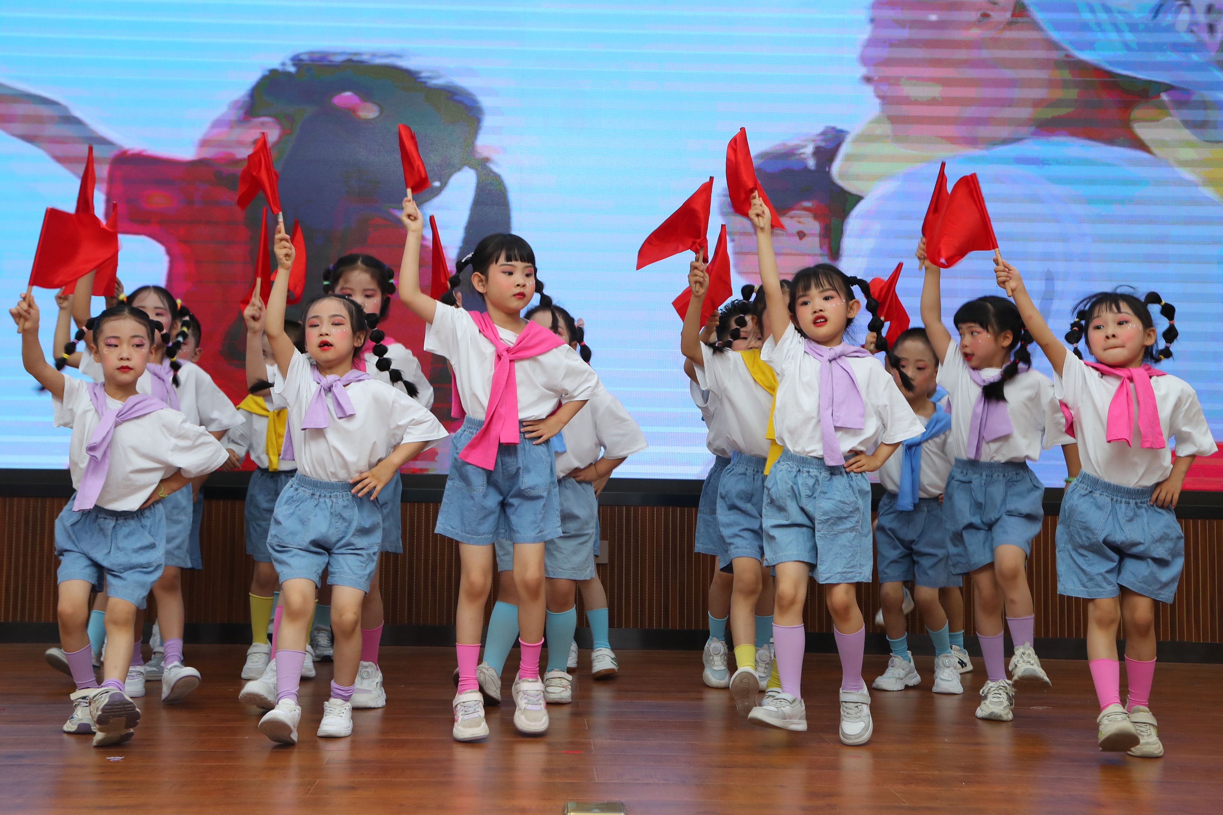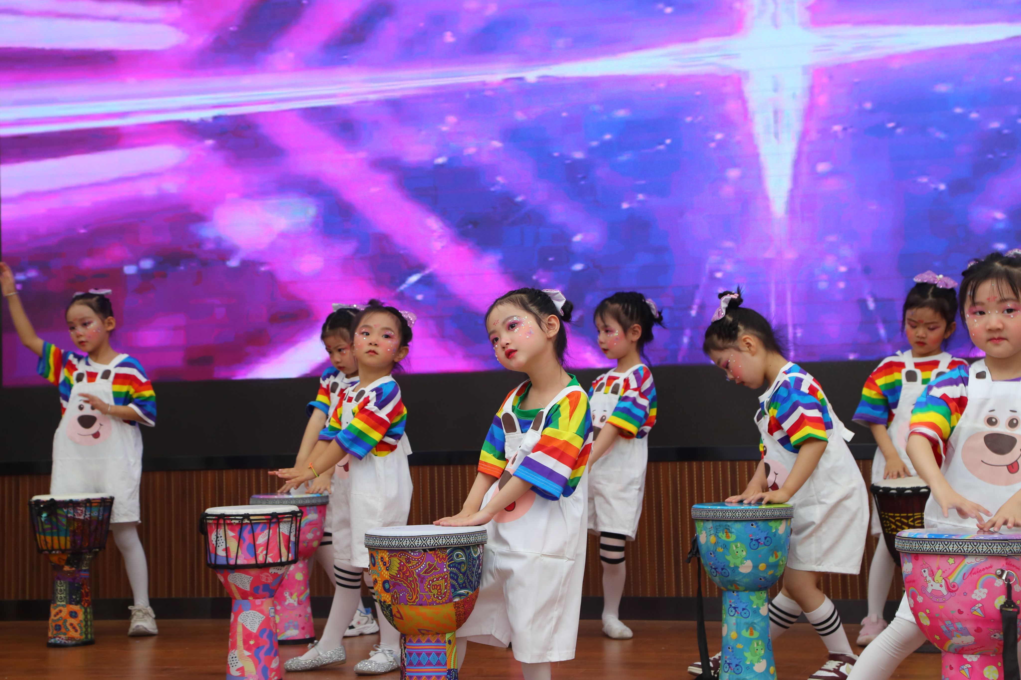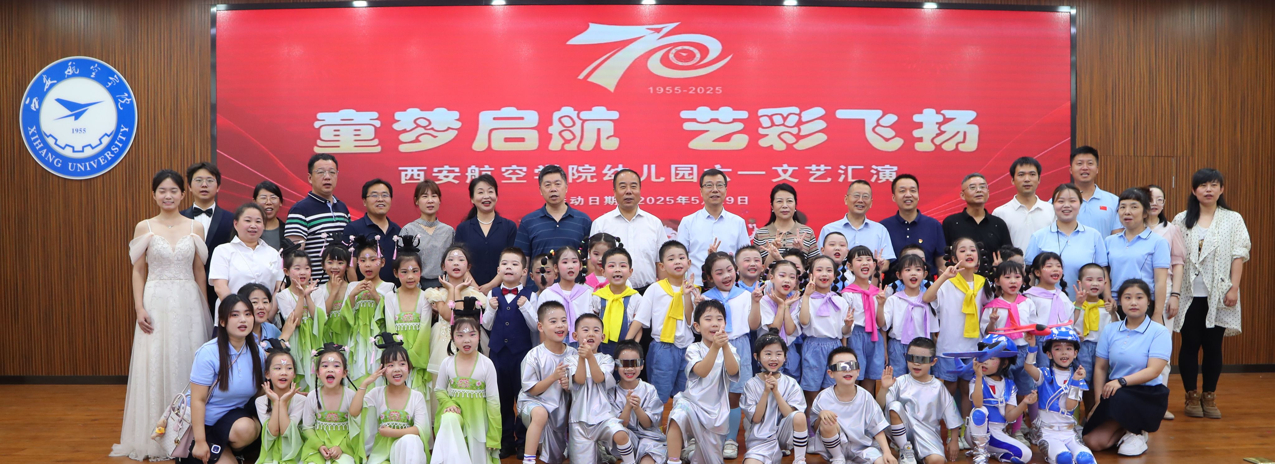 整场演出分为“童趣·成长·希望”三大篇章,既展现了学校幼儿教育成果,也为建校70周年献上独特礼物。童趣篇:童心绽放启华章。手势舞《左手右手》以整齐动作诠释协作精神,情景表演《吃饭啦》通过生活化表演传递餐桌礼仪,古风舞《荷叶翩翩》则用传统韵律展现文化之美。成长篇:薪火相传显底蕴。非洲鼓串烧《少年英雄小哪吒》融合非遗元素与现代节奏,将袁隆平《禾下乘凉梦》融入舞台,传递珍惜粮食理念和科学家精神,舞蹈《说唱京剧》体验国粹文化,离退办老师表演的锅庄舞《慈母颂》彰显了代际传承,《快乐时光》烘托温馨亲子氛围。希望篇:航空梦想向未来。扇舞《万里山河》表达对祖国山河的热爱,现代舞《AI未来》AI强国梦在童年生根,与航空精神巧妙呼应,集体舞《我们有梦想》传递了对未来的期许,展现了少年有志的朝气与活力。随着最后一个音符缓缓消散,这场童真盛宴圆满落幕。