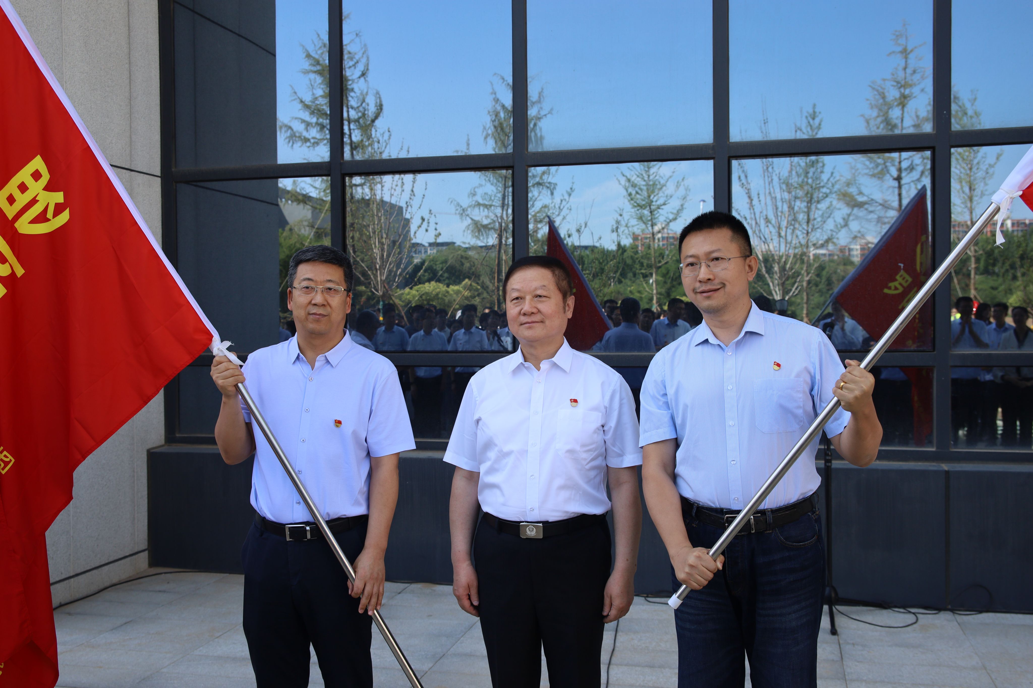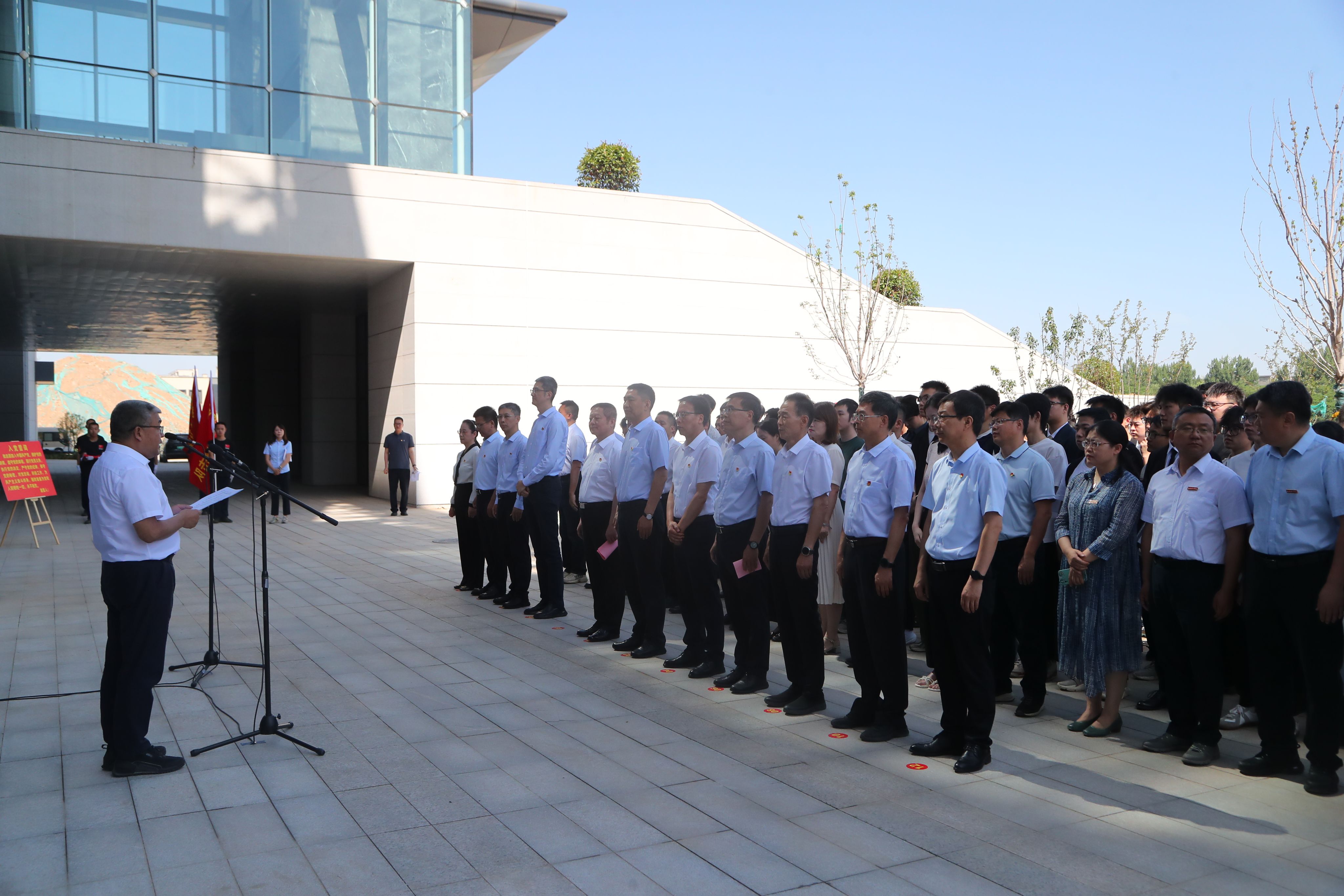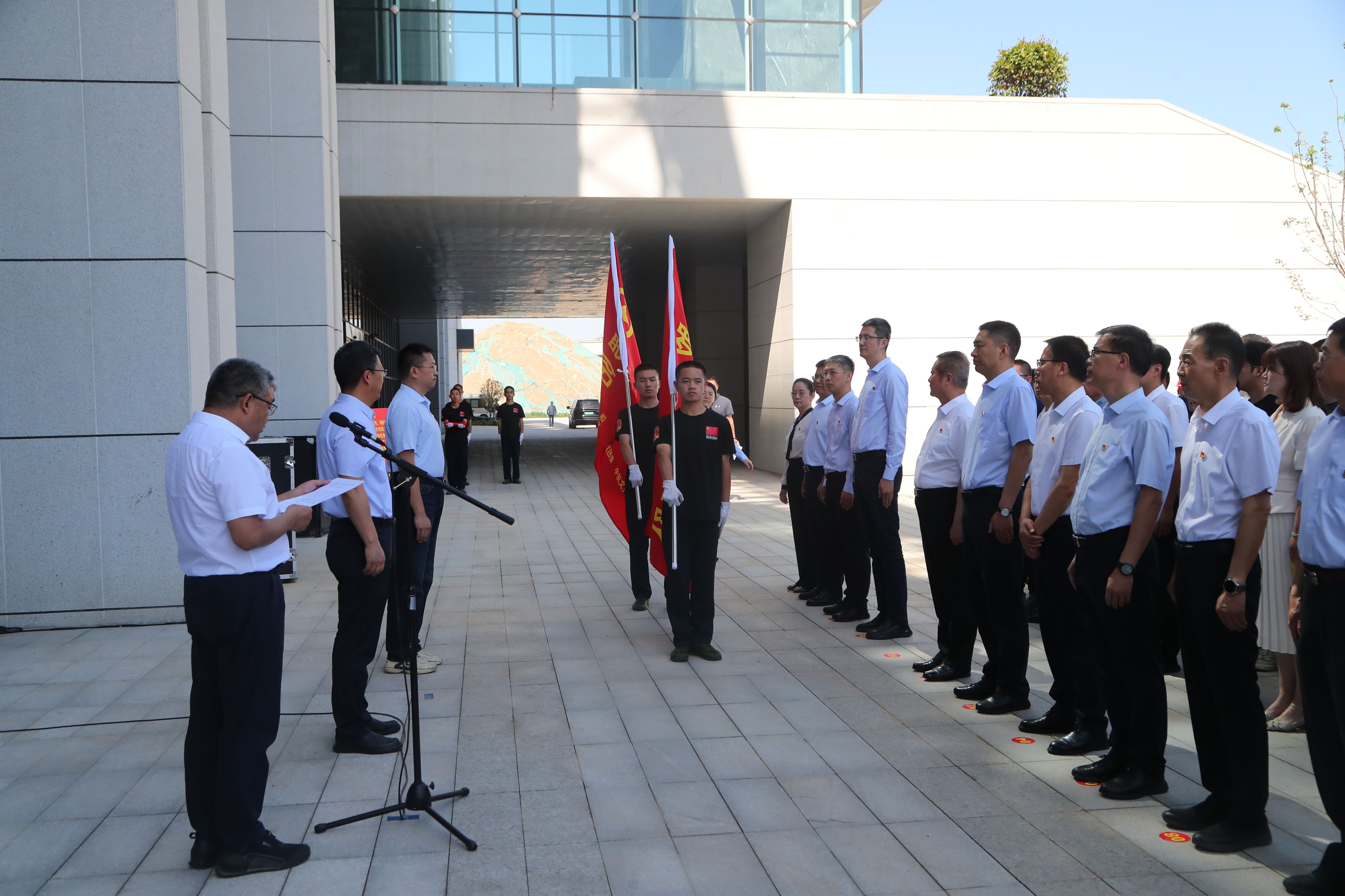 蔡二雨宣读了《关于成立beat365英国官网网站航空文化博物馆、校史馆建设项目“罗阳党员突击队”“罗阳青年突击队”的通知》,李清堂为“罗阳党员突击队”“罗阳青年突击队”授旗。在学校党委副书记宁永录带领下,参会全体党员重温了入党誓词。