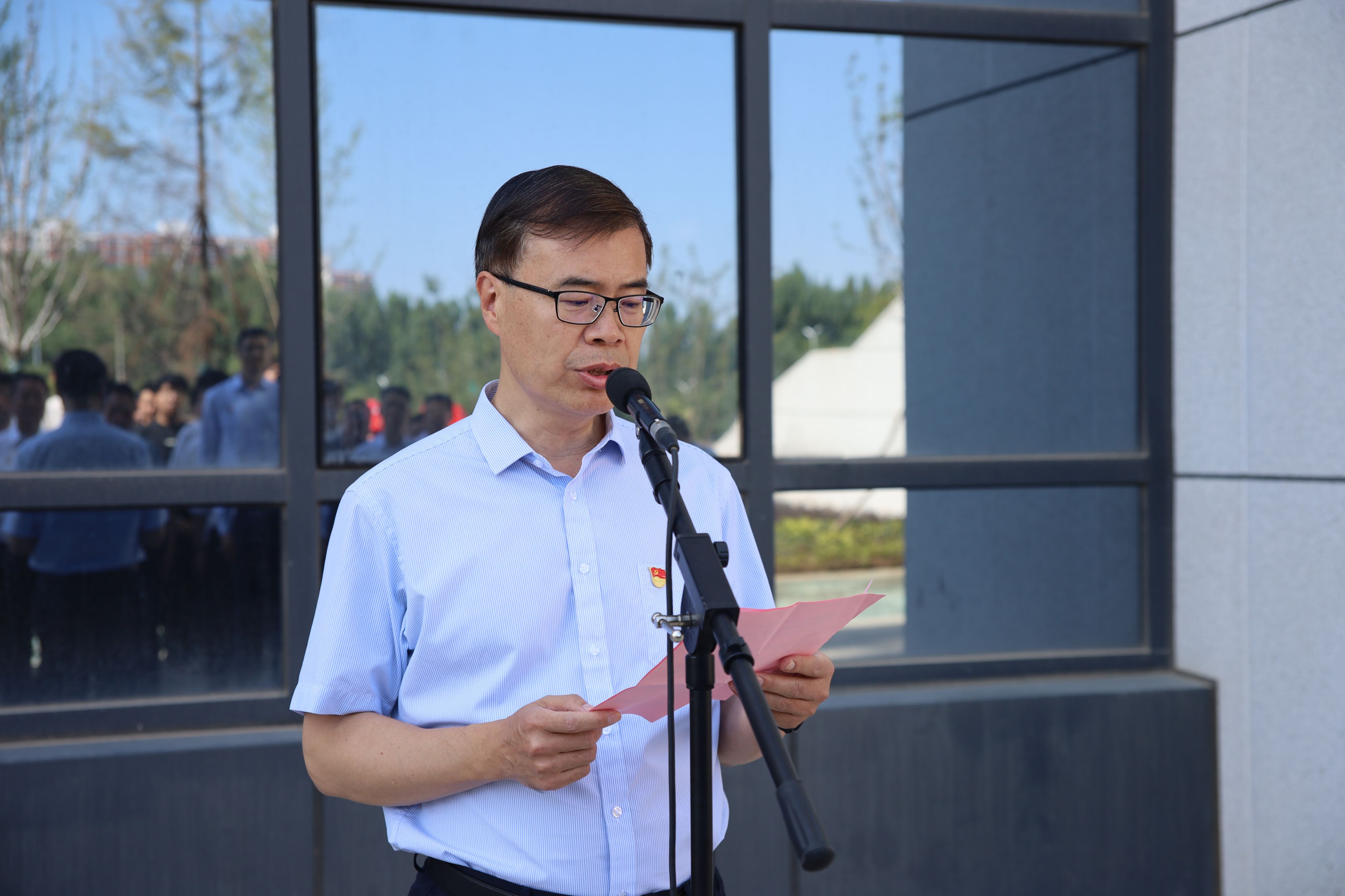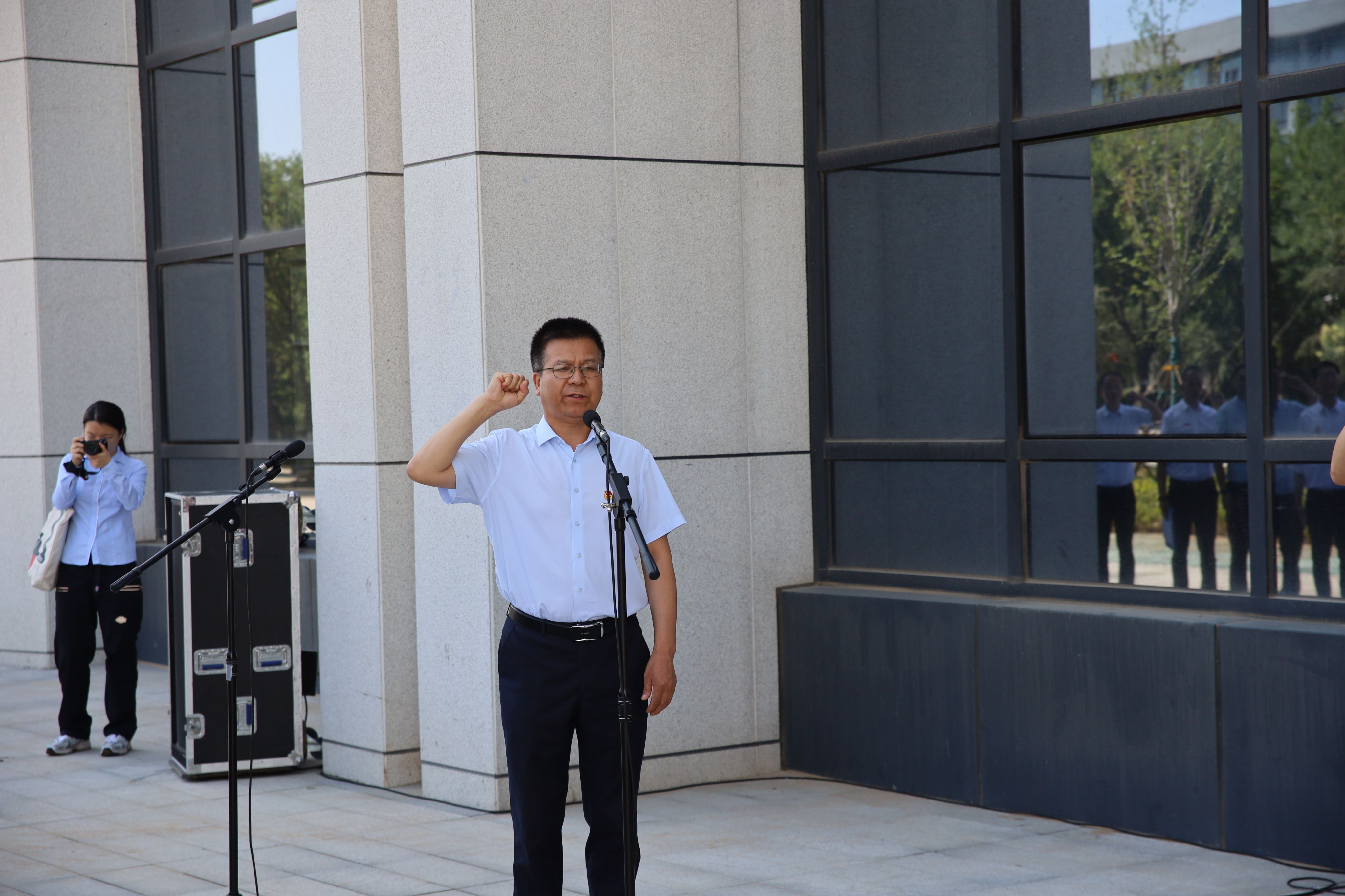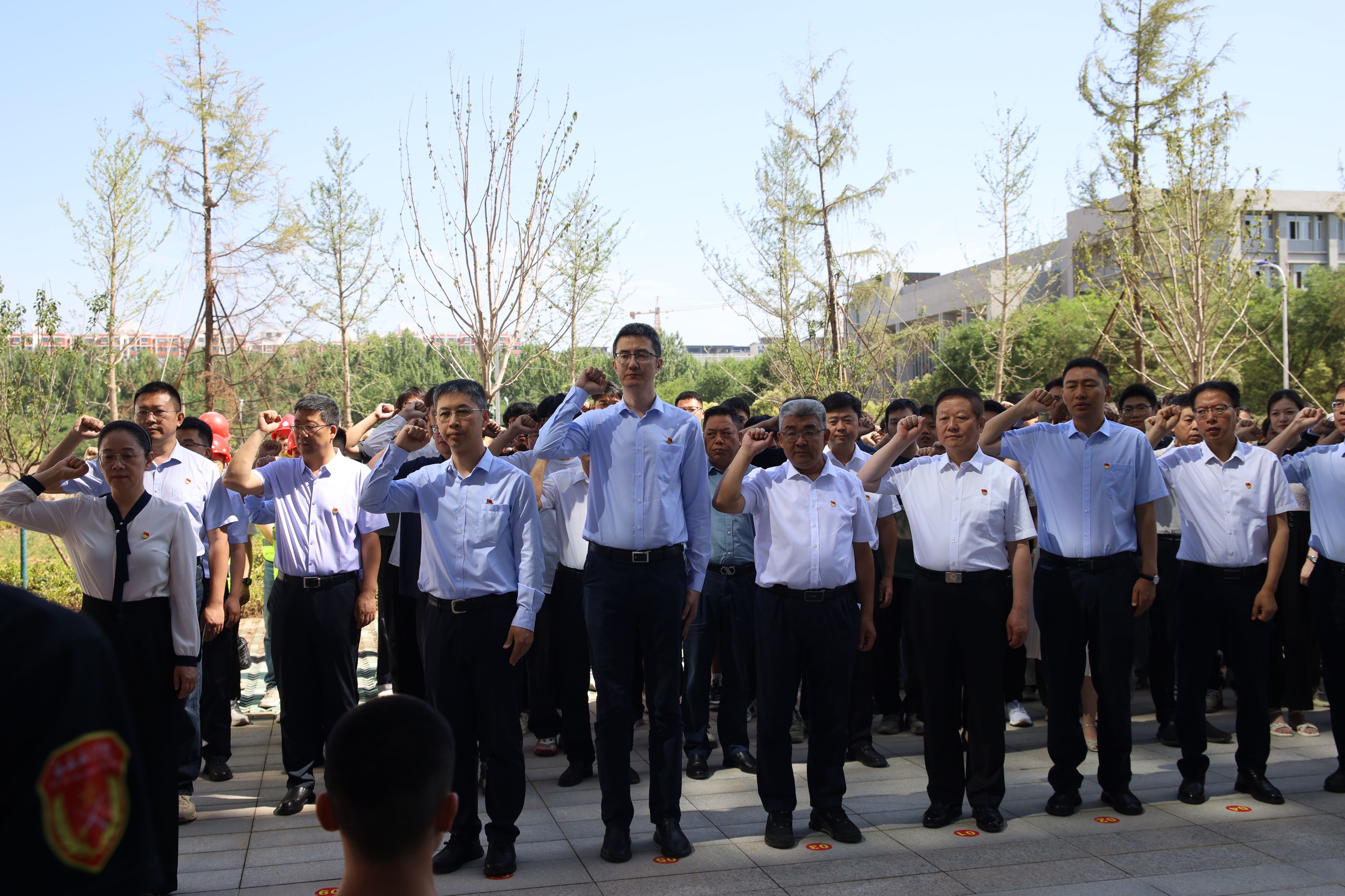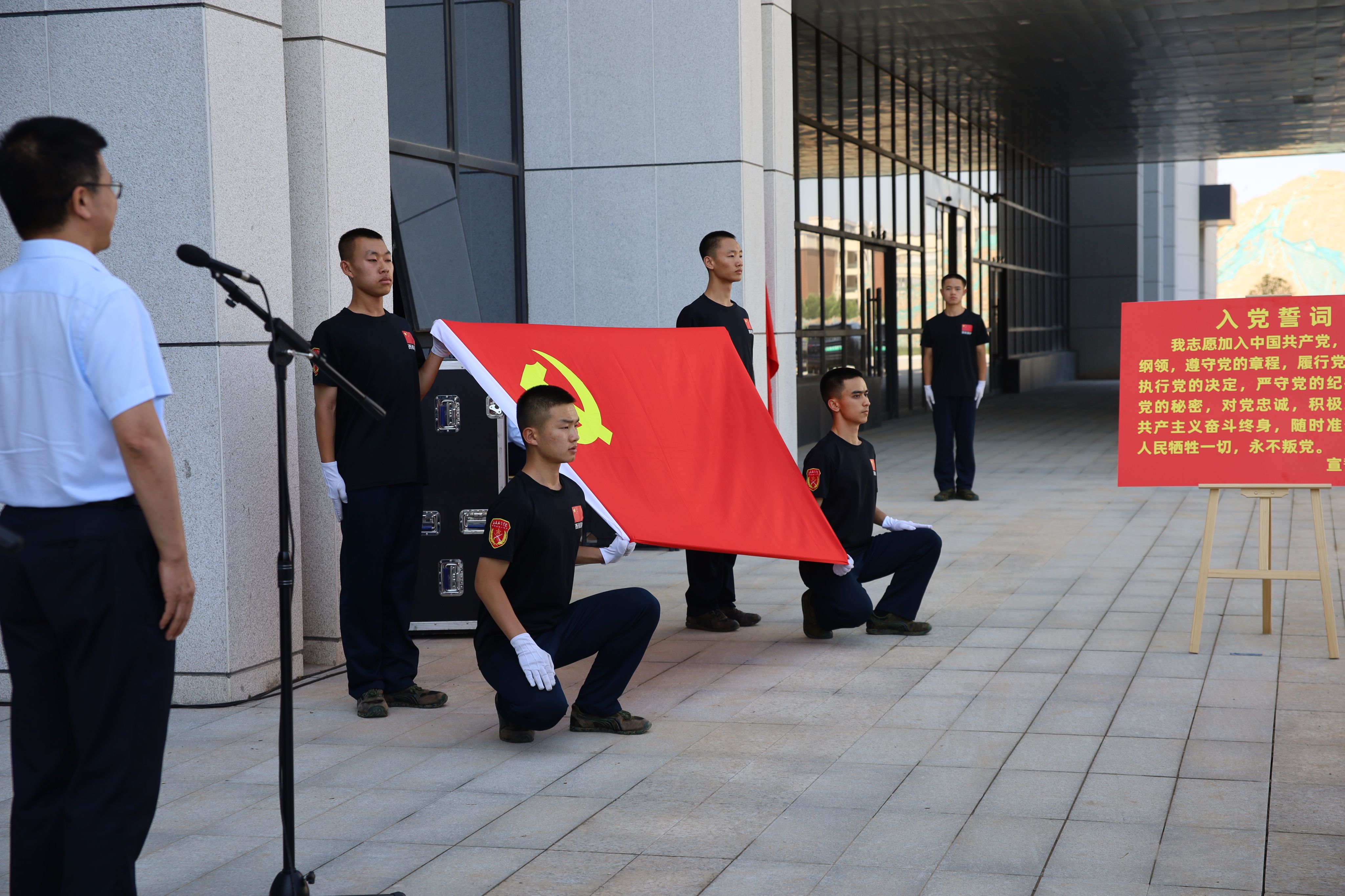 蔡二雨宣读了《关于成立beat365英国官网网站航空文化博物馆、校史馆建设项目“罗阳党员突击队”“罗阳青年突击队”的通知》,李清堂为“罗阳党员突击队”“罗阳青年突击队”授旗。在学校党委副书记宁永录带领下,参会全体党员重温了入党誓词。