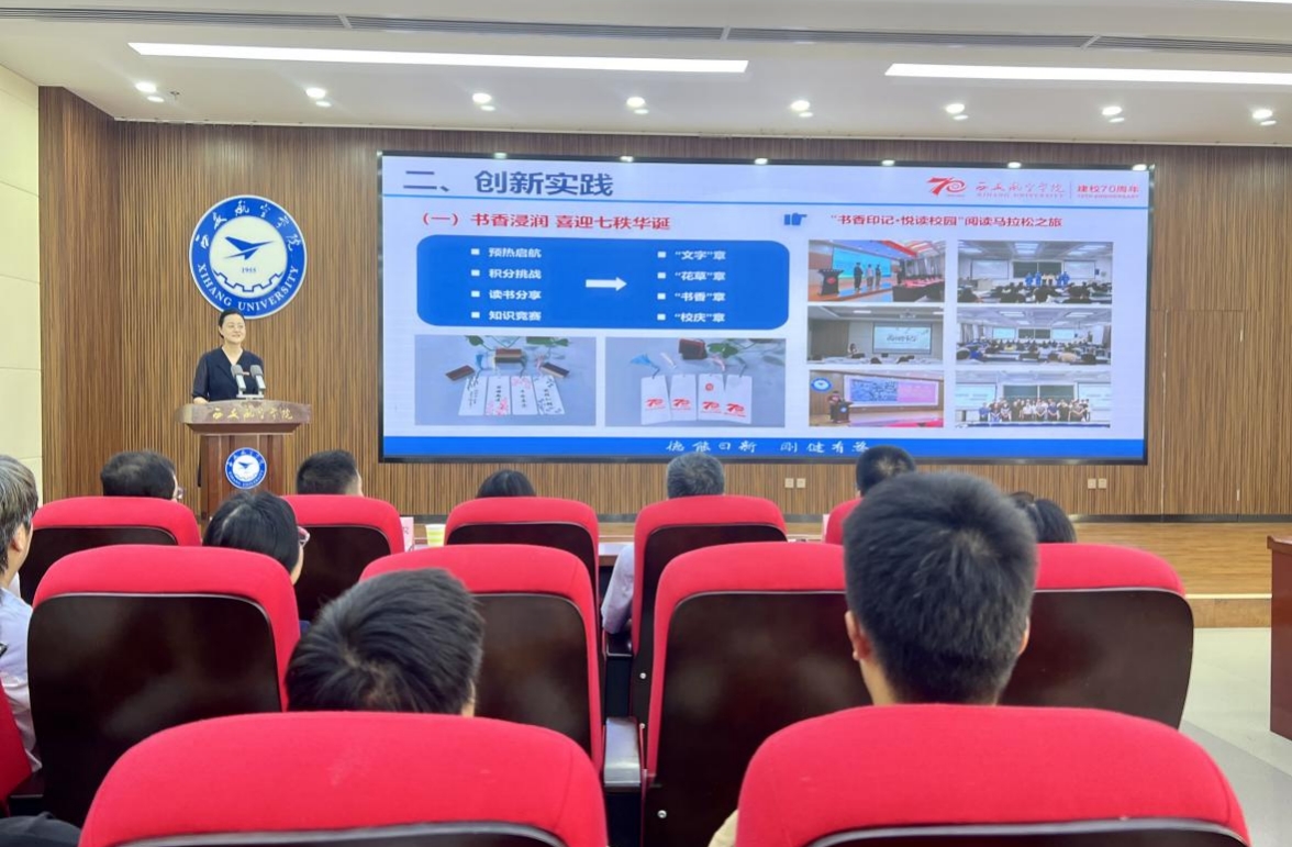闭幕式上,图书馆馆长刘文哲从书香浸润,喜迎七秩华诞;书香温情,彰显七秩底蕴;书香致远,传承七秩风华三个方面汇报了本届读书节的创新实践成果。阅读引领弦歌不辍,文化育人携手同行,未来图书馆将持续深入学习贯彻习近平文化思想,深化“书香航苑”文化品牌建设,营造书香氛围,推进书香校园建设,为书写西航文化新篇章贡献图书馆力量。