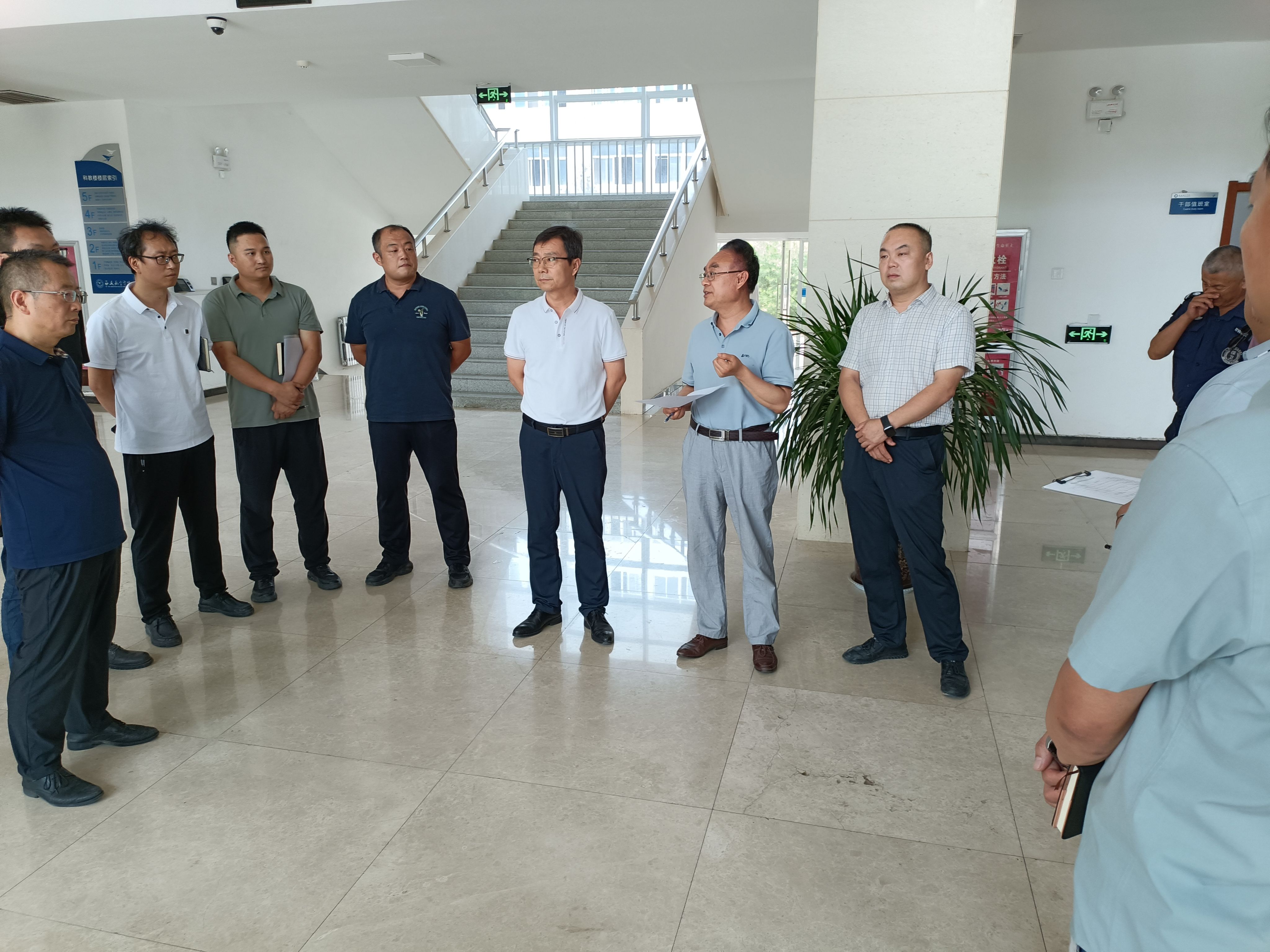 为深入贯彻落实第24个全国“安全生产月”工作部署,全面落实校园安全主体责任,6月19日,学校组织开展夏季校园安全检查活动。本次检查由副校长李永刚、莲湖校区管委会主任刘谦带队,保卫处统筹协调,联合党政办公室、学生工作部(处)、后勤保障处、基建处、国有资产与实验室管理处以及图书馆等多个部门,组成专项检查组,对阎良校区和莲湖校区的重点区域进行了全方位、拉网式的安全隐患排查工作。