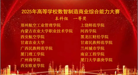 2025年6月21日,由教育部工商管理教育指导委员会指导、新商科实践教学创新与共享联盟主办、新疆财经大学与广东财贸职业学院联合承办的2025年高等学校数智制造商业综合能力大赛全国总决赛圆满落幕。beat365经济管理学院王文旗、苏欣、程涵荻三位同学,在刘欣萌老师的指导下,凭借扎实的数智化商业分析能力与跨学科协同创新能力,从全国84余支参赛队伍中脱颖而出,斩获本科组全国一等奖。