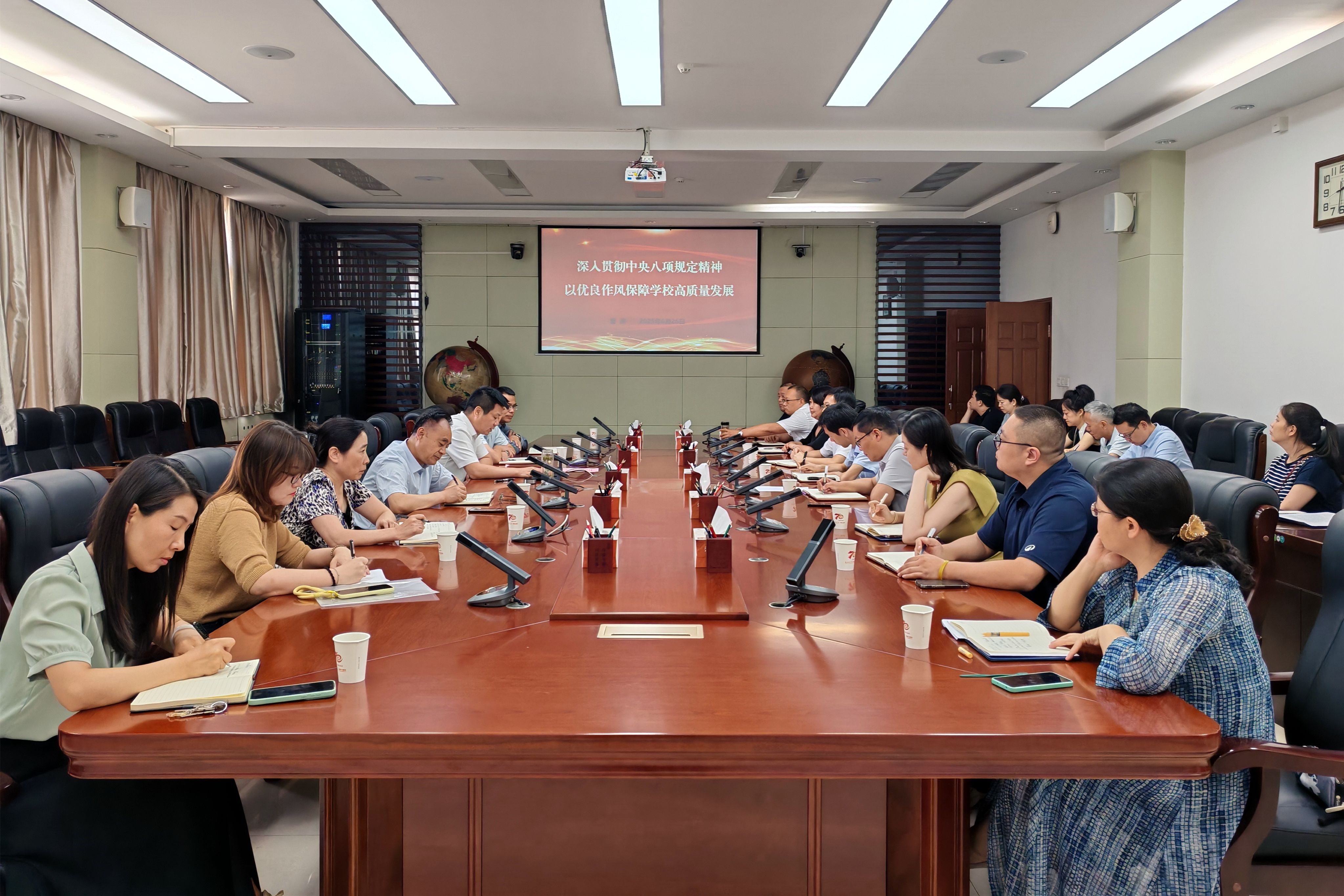 曹渊聚焦落实“13810”工作思路、“13512”学科建设规划等学校中心工作,勉励大家把加强作风建设同推动落实学校中心工作紧密结合,以作风建设促担当作为,以优良作风凝聚发展合力。他勉励领导干部要积极发挥“关键少数”示范带动作用,以“关键少数”带动“绝大多数”,推动作风建设常态化长效化,以作风建设新成效为学校高质量发展提供坚强保障。(文、图/纪检监察机构 刘杰 审核/陈健平)