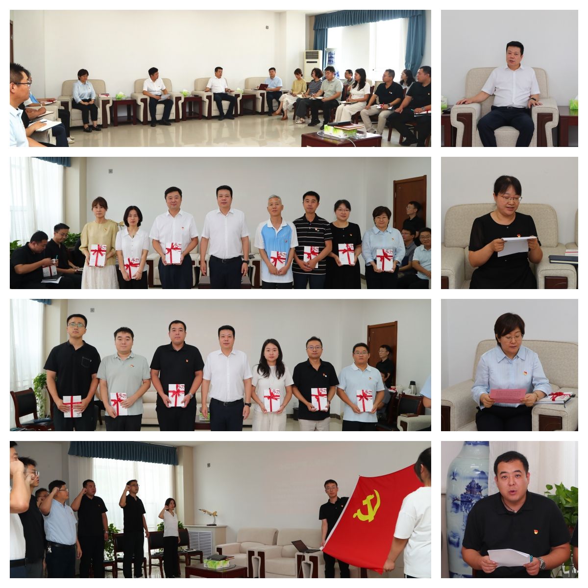 活动中,大家集体观看了《追寻习近平总书记的初心・梁家河篇》,共同追忆总书记的初心,从总书记的过往经历中汲取精神力量。曹渊为“光荣在党整十年”的12名党员一一赠送了纪念书籍,对他们在党整十年贡献表示肯定与鼓励。校工会杨琳、教务处张新鑫、学生处李轶鹏三位同志结合自身经历与感悟,做了深情发言,引起了在场党员的共鸣。活动最后,组织新党员进行入党宣誓,老党员一同重温入党誓词,在激昂的宣誓声中,进一步坚定了大家对党的忠诚和为人民服务的决心。
