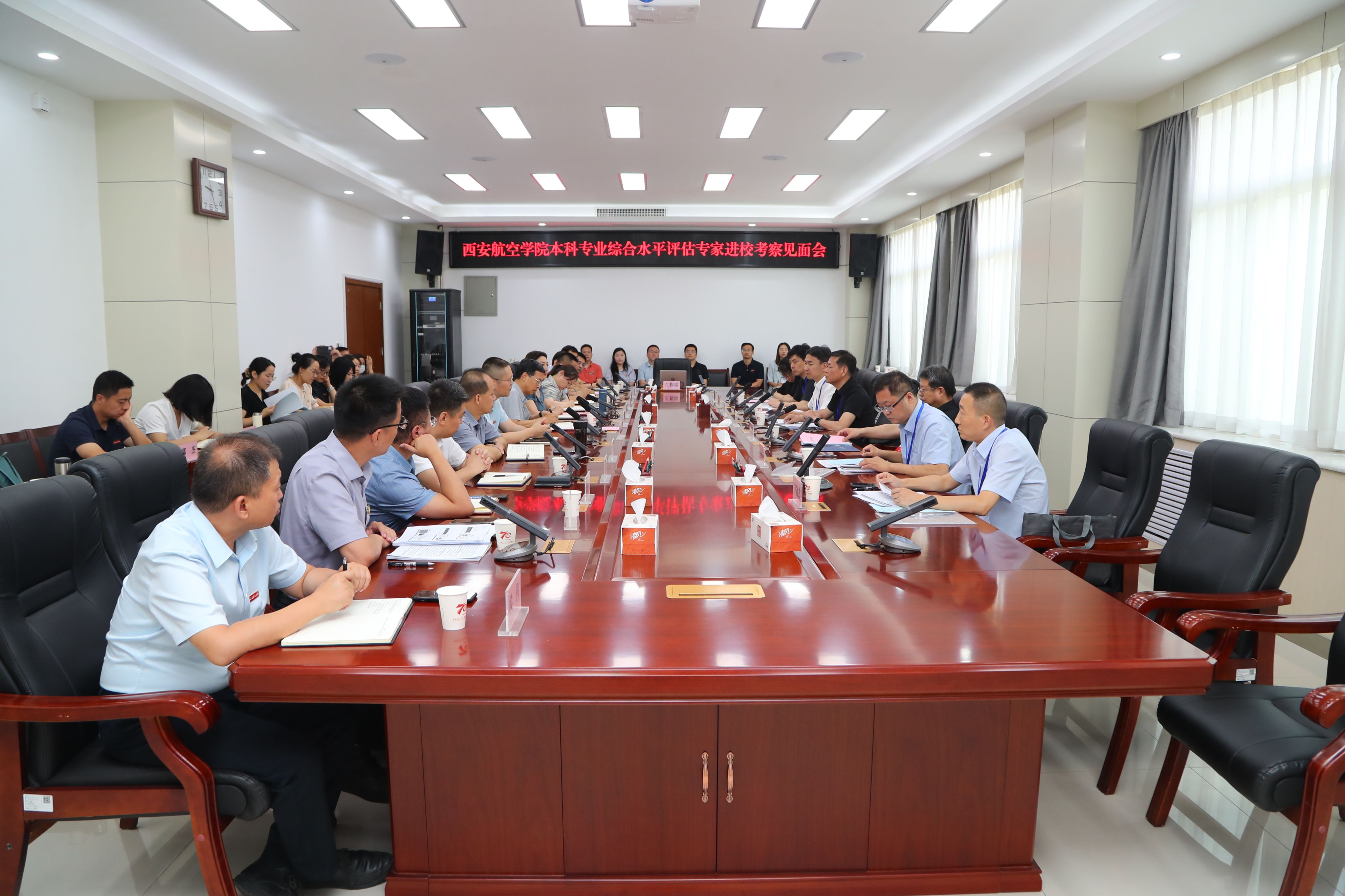 为持续深化专业内涵建设,彰显特色办学优势,全方位评估专业人才培养过程与质量成效,6月26日,学校在阎良校区启动4个专业的本科专业评估进校考察工作,涉及飞行器设计与工程、电气工程及其自动化、能源与动力工程、物流管理专业,评估由第三方机构中国西部高等教育评估中心组织实施。此次评估专家组由6位资深专家组成,分别来自西安电子科技大学、西安建筑科技大学、陕西科技大学、西安工程大学、西安外国语大学、咸阳师范学院等高校。西部评估中心专家组、副校长宋文学、教务处副处长刘宁、参评学院领导班子成员、专业负责人及教师代表出席专家组见面会及反馈会。