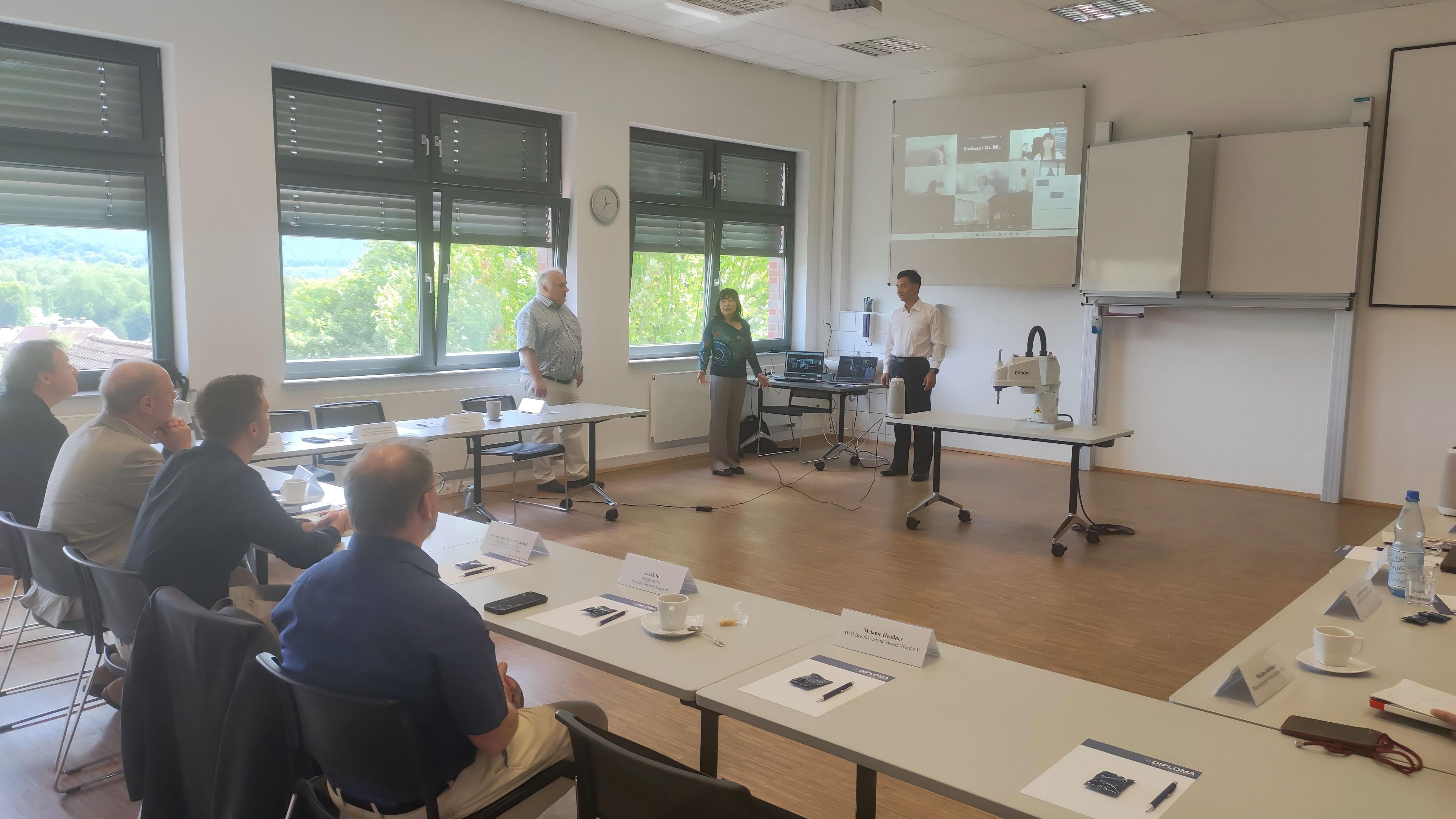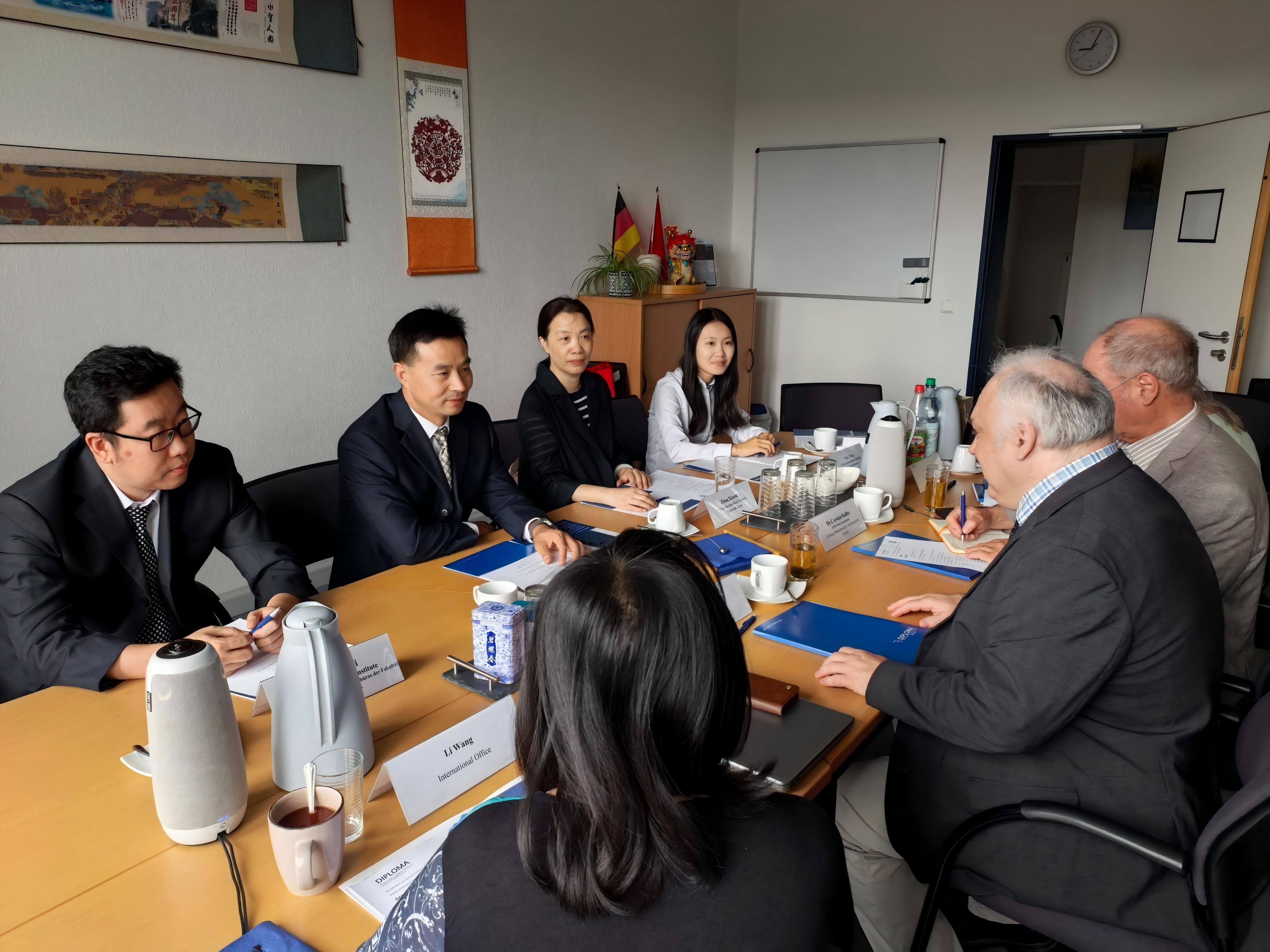 考察团与杜伊斯堡CAS语言学校校长Dirk Scholten等就教学改革、语言教学方法等进行了交流。并与在德语言学校学生进行了交流。访问了北黑森应用技术大学,双方计划加强项目宣传,拟建立奖励机制支持优秀学生互访,并就机器人实验室、电气工程等领域的科研合作达成共识。