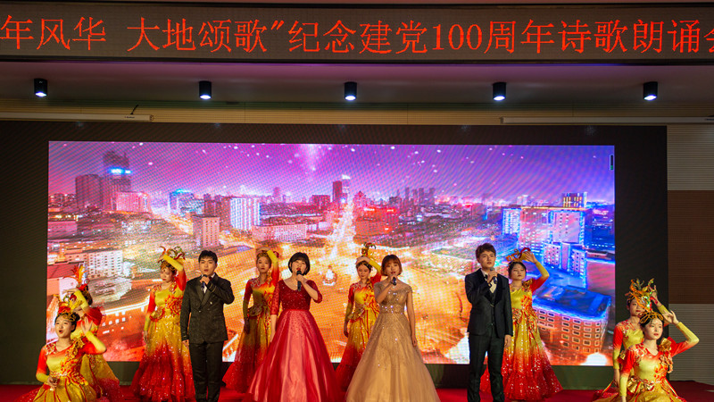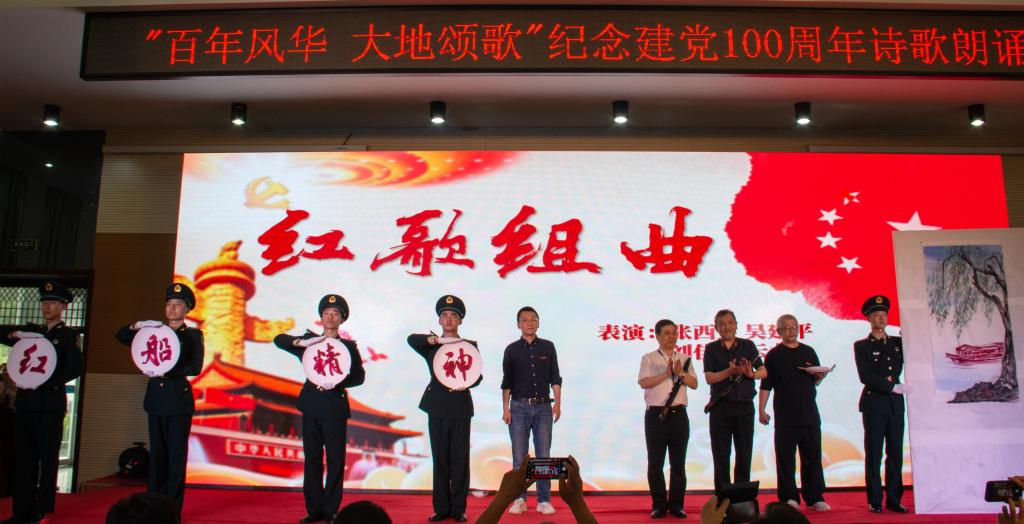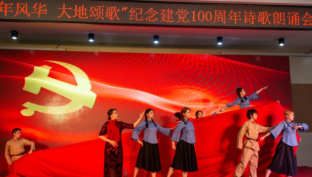 诗歌朗诵会分为“觉醒年代”“峥嵘岁月”“复兴征途”三个篇章,以红色经典诗歌朗诵、乐器演奏、舞蹈唱歌等艺术形式,向建党一百周年献礼。