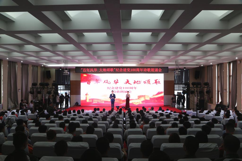 5月14日,由学校党史学习教育领导小组办公室主办,公共艺术教育中心、校团委、人文学院承办的“百年风华 大地颂歌”庆祝建党一百周年诗歌朗诵会在阎良校区阶梯一报告厅举办。校党委书记陈平社、阎良区文化旅游局党委书记、局长张小玉,阎良航空基地发展策划局副局长刘肇卿、阎良区作家协会主席冉学东,宣传部、组织部、阎良校区各二级学院负责人及三百余名师生代表一同参加了活动。
