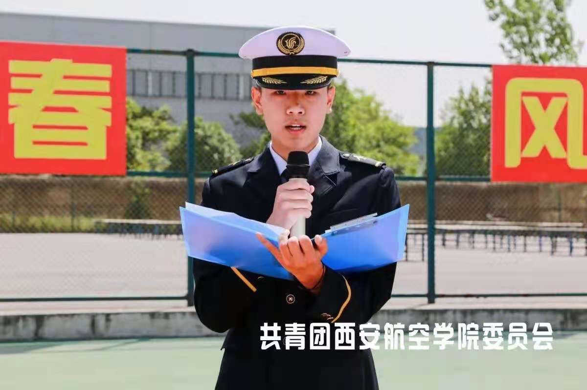 飞行器学院飞行技术201班张佳程同学代表新团员郑重承诺:全体新团员将铭记自己在团旗下的承诺,继承和发扬共青团的优良传统,用实际行动践行自己的入团誓言。